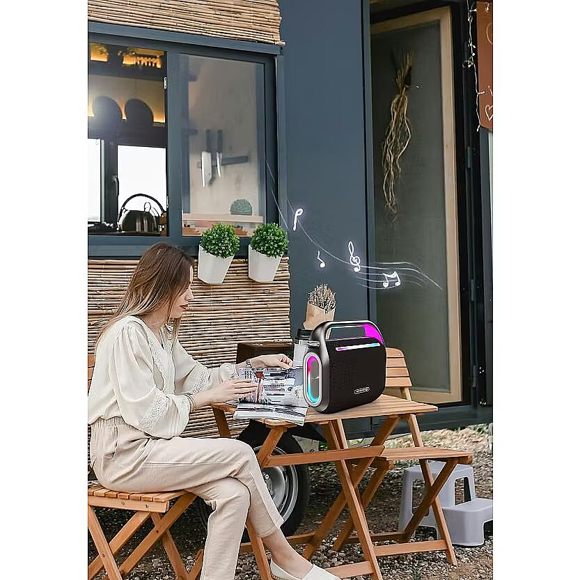 В комплект также входит микрофон, который предлагает развлечение на любой вечеринке или празднике. Он просто сопрягается с динамиком, и затем можно начинать караоке или хостинг.