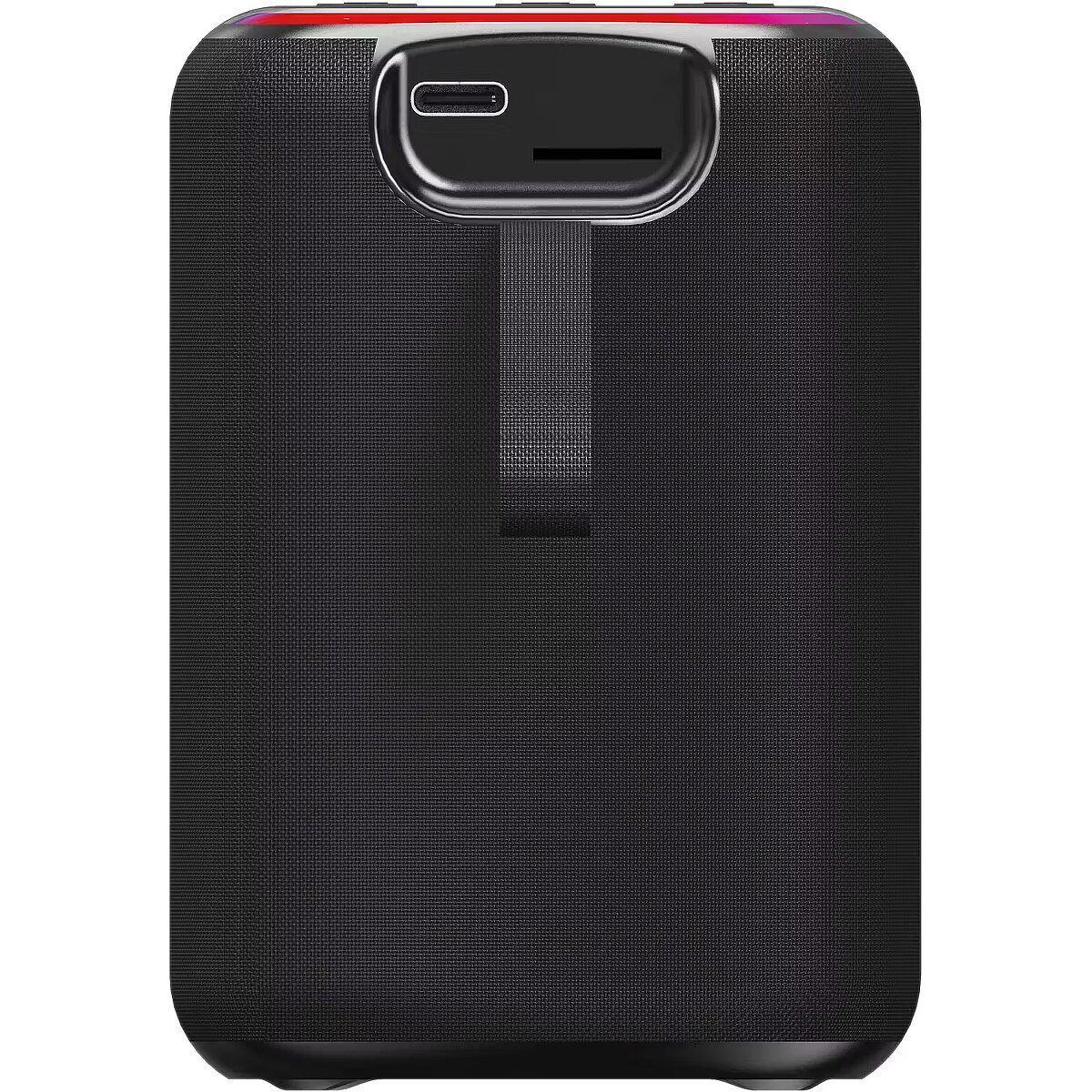 Description - Portable BT party speaker with RGB LED light effect Stream your music wirelessly, signal reach up to 10 m Integrated microphone for handsfree phone calls Multi-color RGB LED light effect with 5 color-modes Also plays music directly from micro SD card (max 32GB) or FM radio Long battery life - up to 4 hours of music streaming on a single charge