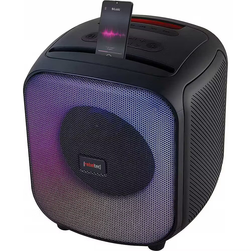 Description - REBELTEC PowerCUBE 500 - Bluetooth speaker with powerful power and unparalleled sound quality. Discover REBELTEC PowerCUBE 500 - a Bluetooth speaker that will change your experience of listening to music. It surprises not only with its modern functionality, but also with its unique cube-shaped design. It fits into any interior, is practical when traveling. Enjoy powerful sound, unparalleled bass and full sound that will fill any room and outdoor area. Key features: 60W RMS power: The PowerCUBE 500 speaker offers incredible power that will fill the space with full, dynamic sound. High-quality mid-woofer (45W, 6.5") and tweeter (15W, 1.5") speakers provide crystal clear sound and powerful bass. IPX4 waterproof: Use it in any conditions without worries - REBELTEC PowerCUBE 500 is splash-proof, making it an ideal choice for the beach, lake or garden. LED backlight in 6 modes: Create an amazing atmosphere with spectacular LED backlighting in different colors and modes - perfect for parties, social gatherings or evening relaxation with your favorite music. Versatile audio files: PowerCUBE 500 supports a wide range of audio formats such as MP3, WAV, FLAC, WMA, APE - perfect for playing all your favorite songs, also in lossless quality. TWS function (True Wireless Stereo): Pair two PowerCUBE 500 speakers and enjoy stereo sound indoors or outdoors - now you can create a truly spatial audio system without unnecessary cables. FM radio: Listen to your favorite radio stations wherever you are, without the need to connect external devices. Additional features: 6.3 mm microphone jack (mono), 10 multimedia buttons for easy control, phone or tablet holder, powerful battery, - everything you need in one device. REBELTEC PowerCUBE 500 is a speaker that adapts to your lifestyle. It offers not only great sound quality, but also functions that will meet the expectations of every music fan, from parties to quiet evenings. Choose power, quality and style - choose REBELTEC PowerCUBE 500. SPECIFICATION: 60W RMS power Controlled by smartphone (Bluetooth) or built-in buttons Very high-class C/A converter enabling playback of lossless files Types of files read: MP3, WAV, FLAC, WMA, APE Compatible with Bluetooth 5.3 Bluetooth range 10m IPX4 waterproof Working time: 8 -12h, charging time about 3h 45W mid-woofer 163mm (6.5") + 15W tweeter 37.5mm (1.5") BASS BOOSTER - bass tone amplification using the button LED backlight in six modes (can be turned off) Built-in Li-Ion 4000mAh battery at 7.4V (charged from USB-C), cells 21700 (2x 4000mAh, 3.7V) The speaker can also function as a power bank (via USB port) Modes: Bluetooth, TWS, FM radio, pen drive, microSD card, AUX, Microphone (karaoke), Output voltage 7.4V 1x 6.3mm MONO microphone socket Frequency response 20Hz-20kHz Distortion