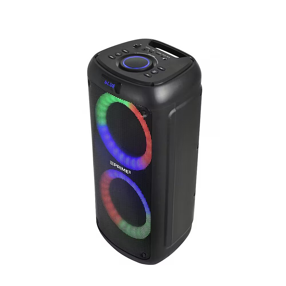 Description - AUDIO SYSTEM WITH BLUETOOTH AND KARAOKE "BLAST" APS51 Surprise your friends with a party where, apart from good moods, there will be good quality music from the APS51 "BLAST" Audio System! Karaoke function 3000 W P.M.P.O. Multi-color LED backlight EXCEPTIONAL FUNCTIONALITY Surprise your friends with a party where, apart from good moods, there will be good quality music from the PRIME3 "BLAST" APS51 Audio System. It will definitely be an unforgettable time! Each of your guests will be pleased with the possibilities offered by this music equipment. Thanks to the Bluetooth module, which enables wireless playback of music from portable devices such as smartphones or tablets, each meeting participant will be able to present their favorite music. Thanks to the built-in MicroSD player (up to 32 GB) and the USB port, you will also be able to select audio files stored on SD cards or any type of portable USB memory. Would you like to connect any other wired audio sources? Yes, you can. This is possible thanks to the AUX IN port located on the back of the device, where you and your friends have collected your favorite songs. "BLAST" APS51 also allows you to listen to your favorite radio station. KARAOKE Device power 3000 W P.M.P.O. will provide a well-sound background music for people twirling while dancing. The device is equipped with two woofers, each 6.5 inches, which allow you to enjoy the solid sound of low tones at any volume level. Do you like singing? The built-in karaoke function will provide you with a lot of fun. The built-in 6.5 mm jack socket allows you to connect any microphone that has the same type of connector. Multicolored LED backlighting will additionally provide you with a disco atmosphere. TWS FUNCTION (True Wireless Stereo) The "BLAST" APS51 audio system also has the TWS (True Wireless Stereo) function, which allows you to connect two of the same speakers to make the music play even louder and provide pleasure on an even larger surface. After proper activation and pairing of the devices, we also obtain a classic stereo effect. Thanks to battery power and a built-in 3600 mAh battery, "BLAST" APS51 will allow you to have fun with music for up to 5 hours after a full 3-hour charge. The comfort of operation is complemented by the remote control included in the set.