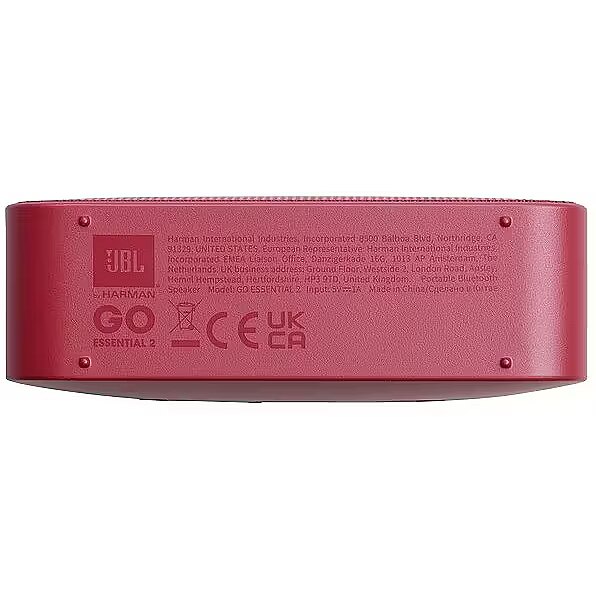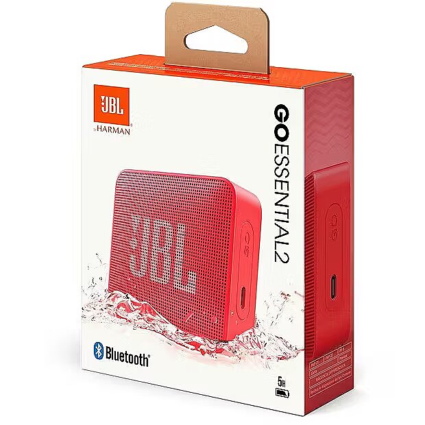 • Device type: Portable speaker• Model: Go Essential 2• Connection type: Bluetooth• Bluetooth version: 5.1• Audio power: 3 W• Frequency range: 180 Hz – 20 kHz• Number of speakers: 1• Microphone: No• Lighting: No• Water protection: IPX7• Battery type: Li-Ion• Playback time: up to 5 h• Charging time: 2.5 h• Charging port: USB-C• Power supply voltage: 5 V• Color: Red