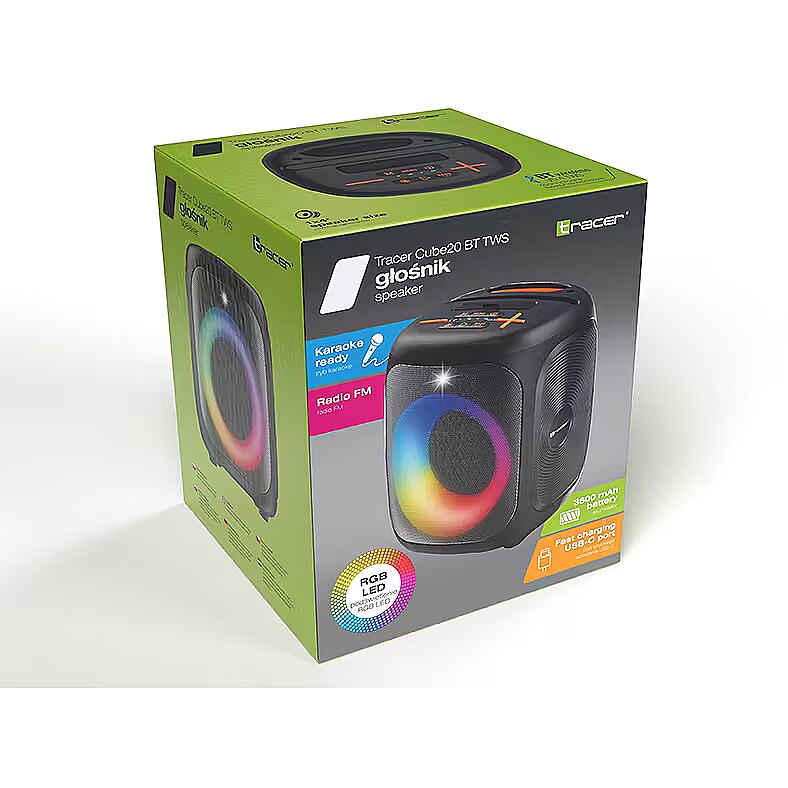 ShortDescription - Głośnik przenośny | moc: 20W | bluetooth: 5.4 | radio FM | podświetlenie RGB