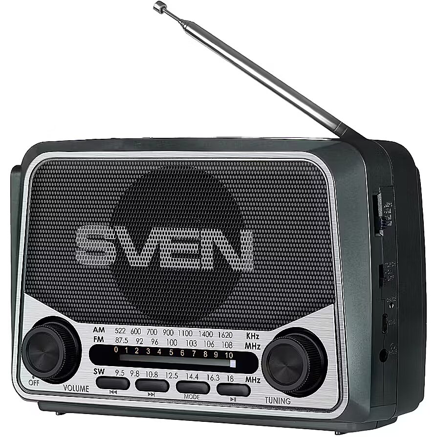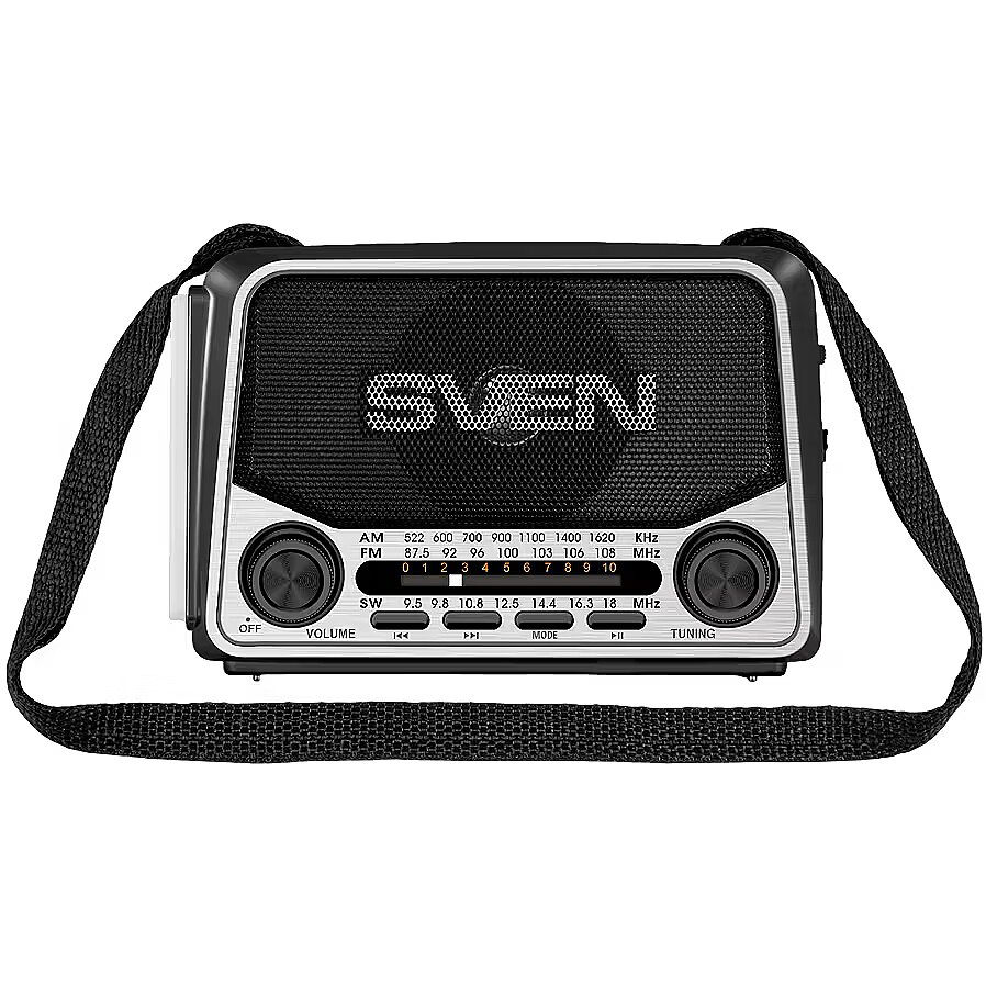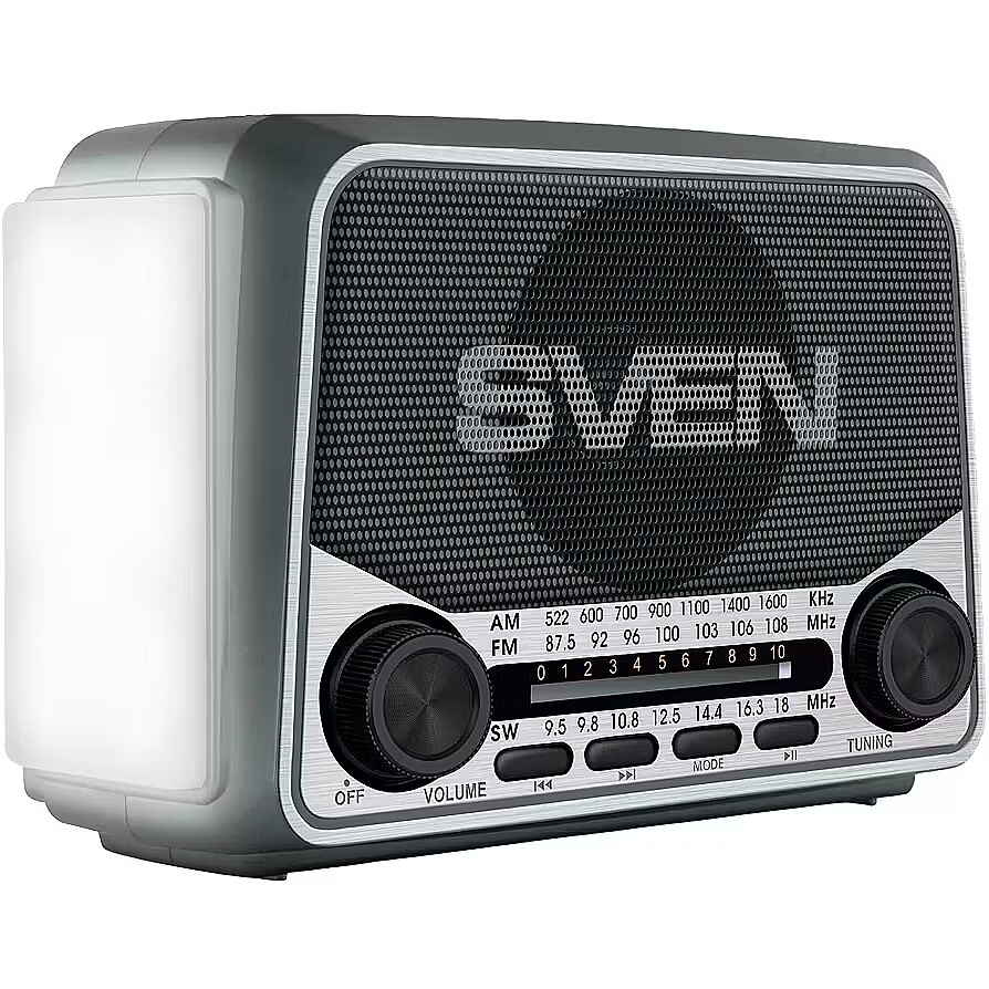 ProductDescription - Speaker SVEN SRP-150, gray (3W, Bluetooth, FM/AM/SW, USB, microSD, flashlight, battery)