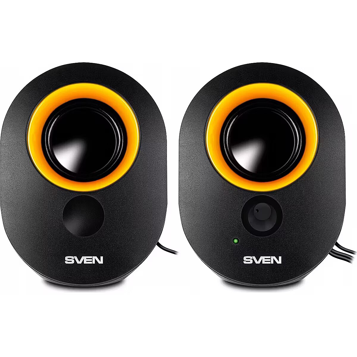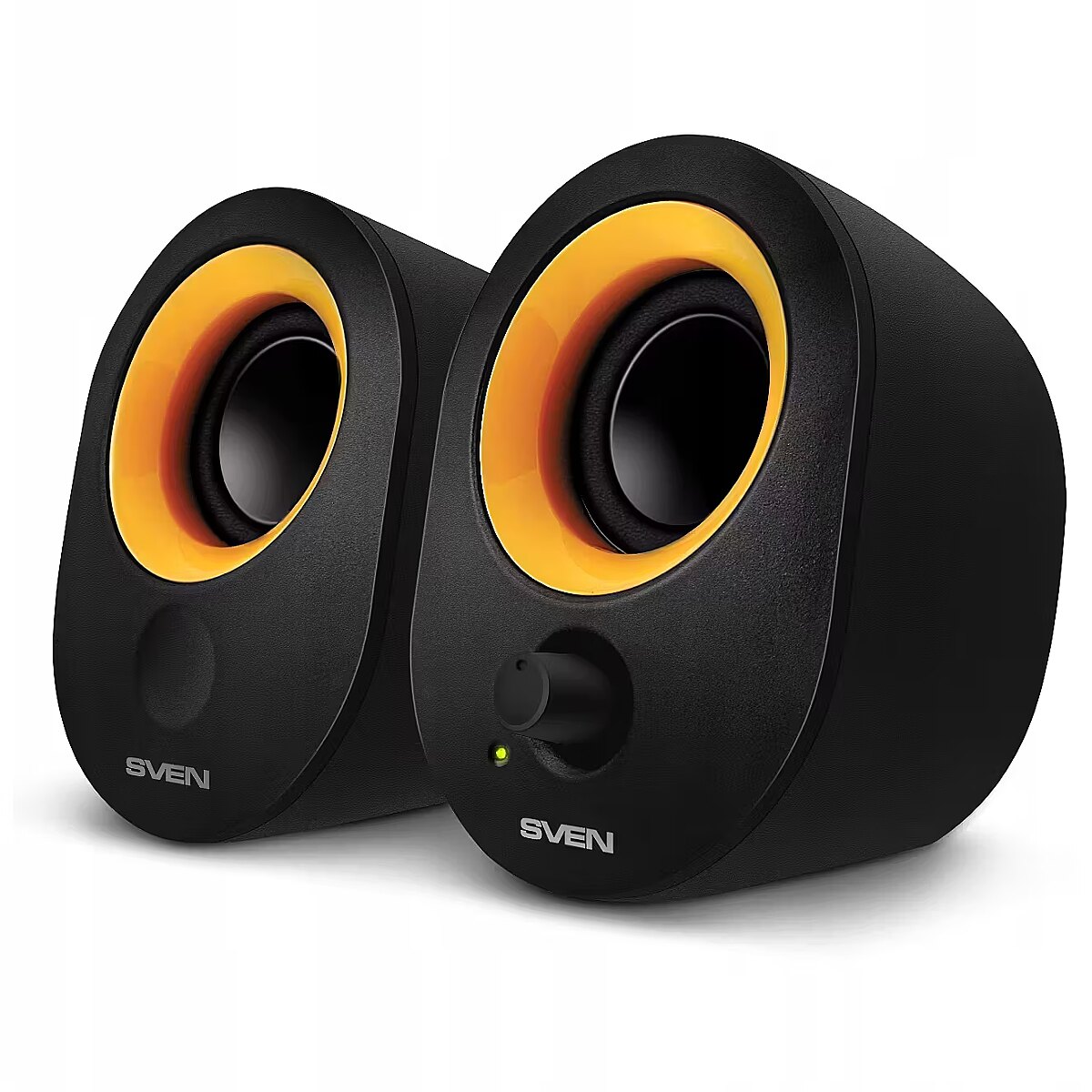 Bright design is another reason why this system draws attention. Glossy black surface of the speaker cabinets, yellow driver rims – this speaker system looks like a glamour girl going to a party to enslave men’s hearts and catch their delighted glances. The information provided on this page is a property of the manufacturer or the brand.To find out more, please visit: http://www.sven.fi