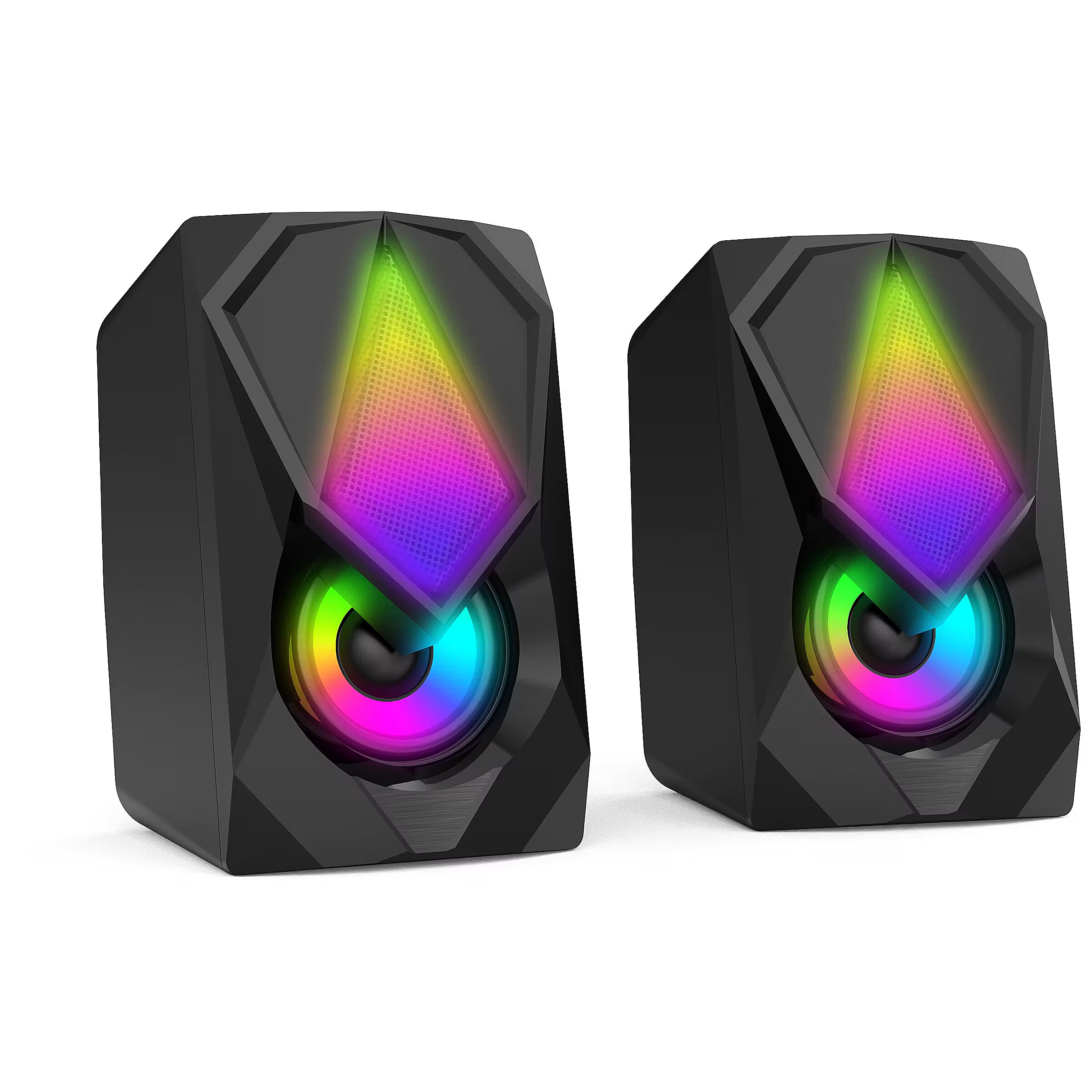 Компьютерные колонки с эффектной подсветкойМощность: 2 × 3 Вт RMSДлинный кабель 1,2 мПульсирующая цветная подсветка