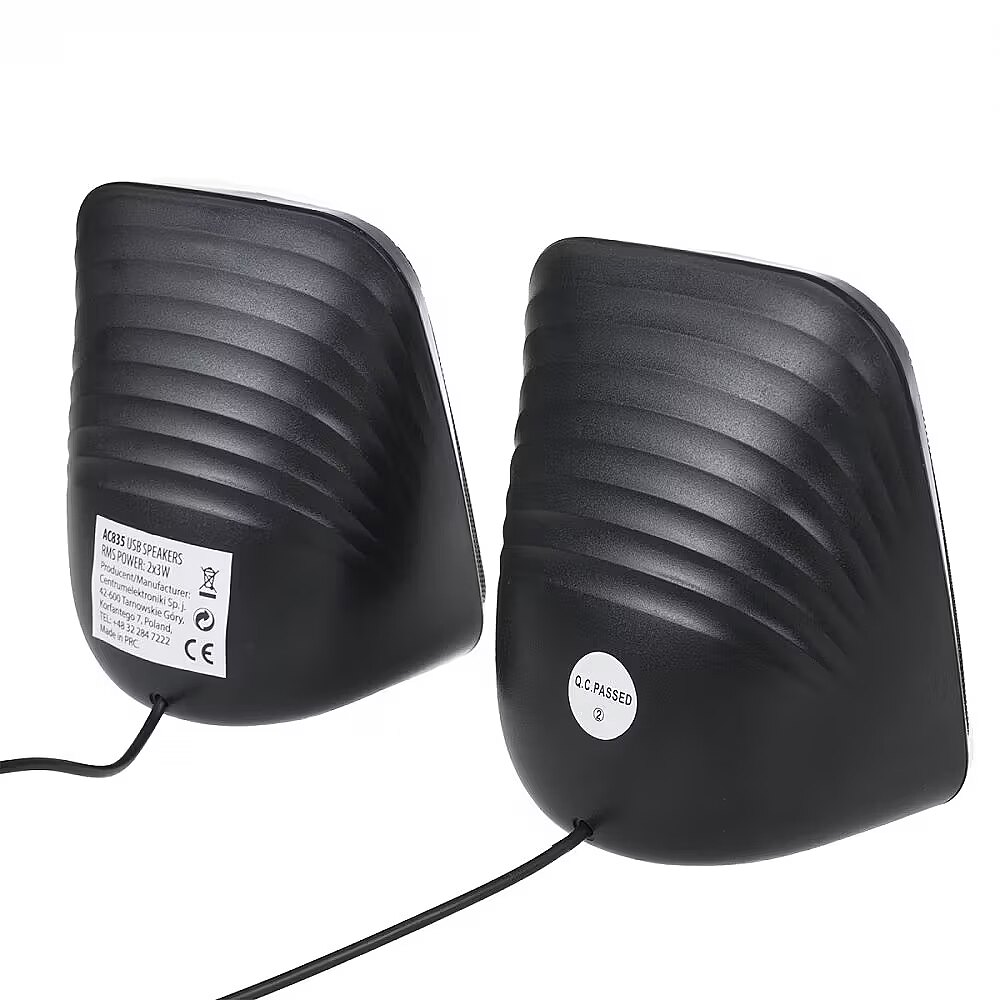 Description - Audiocore AC835 2.0 stereo speakers With a power of 6 W (2x3W R.M.S), the Audiocore AC835 speakers offer a high quality and clear sound. 2.0 system is perfect for both listening to music and watching movies. The blue LED backlight creates an additional mood. Thanks to the 3.5 mm jack plug, the multimedia speakers can be used universally. They are perfect for laptops, PCs, MP3 players, smartphones, tablets and much more.