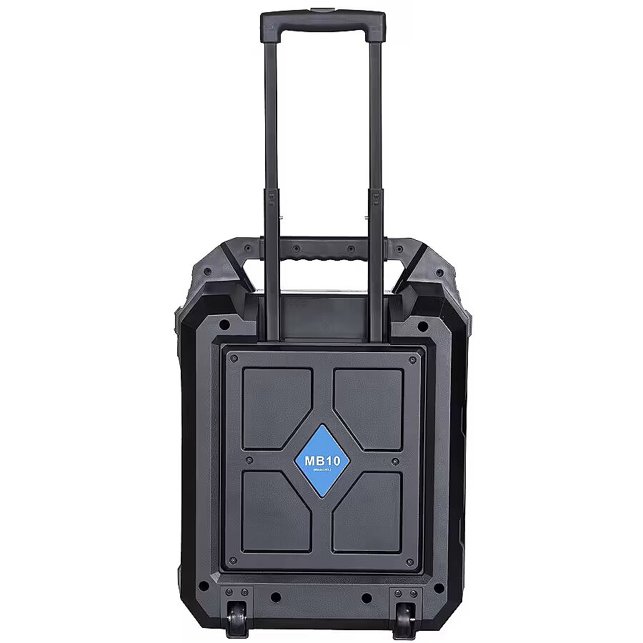 In addition to the advantages of the technical specification of the system, the strong point of the MB10 is also ergonomics and convenience of use. You can control the device remotely using the included remote control, and the handy telescopic handle and wheels allow you to move them freely. If you would like to take the MB10 for example for a picnic or garden party, the built-in rechargeable battery will allow for 3.5 hours of wireless listening. When the energy in the battery becomes depleted, you can always connect the loudspeaker to the mains power supply. The full battery charge time is 7 hours.