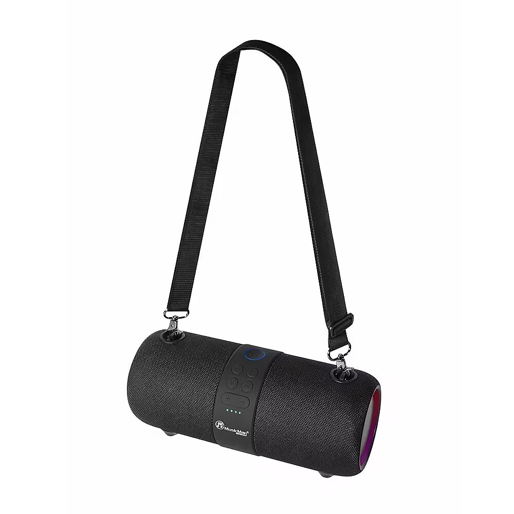 Accessories included - MusicMan LED SoundBlaster BT-X56, USB-C charging cable, AUX cable, shoulder strap, user manual