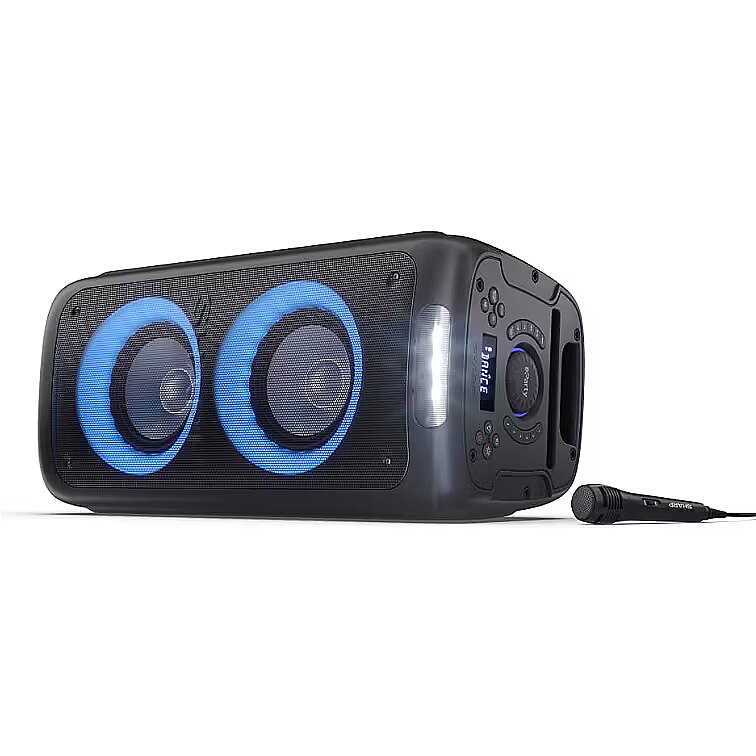 LongSummaryDescription - Sharp PS-949. Audio output channels: 2.1 channels, Woofer diameter (imperial): 20.3 cm (8"). Peak Music Power Output (PMPO): 132 W. Connectivity technology: Wired & Wireless, Bluetooth profiles: A2DP, AVRCP. Product type: Party speaker, Product colour: Black, Housing material: Plastic. Recommended usage: Universal, Certification: CE (RED, RoHS, ErP), REACH/PAH/SCCP