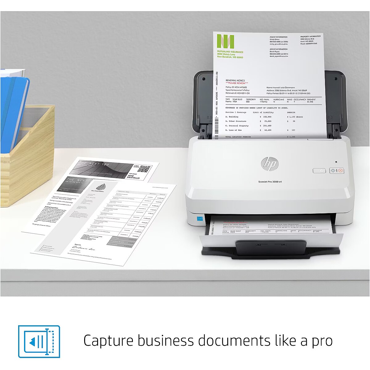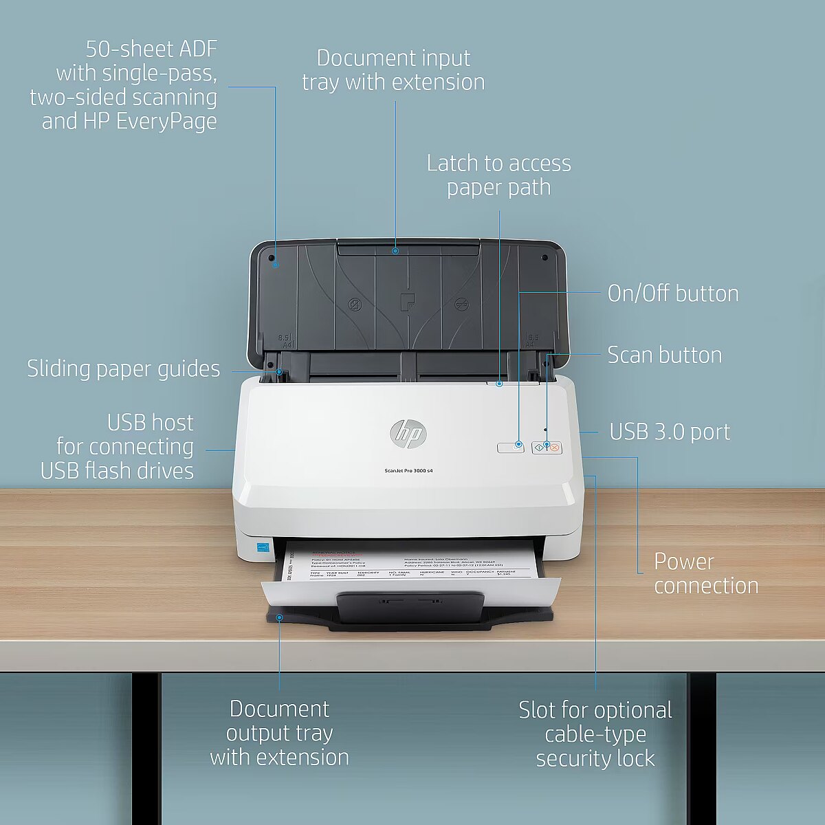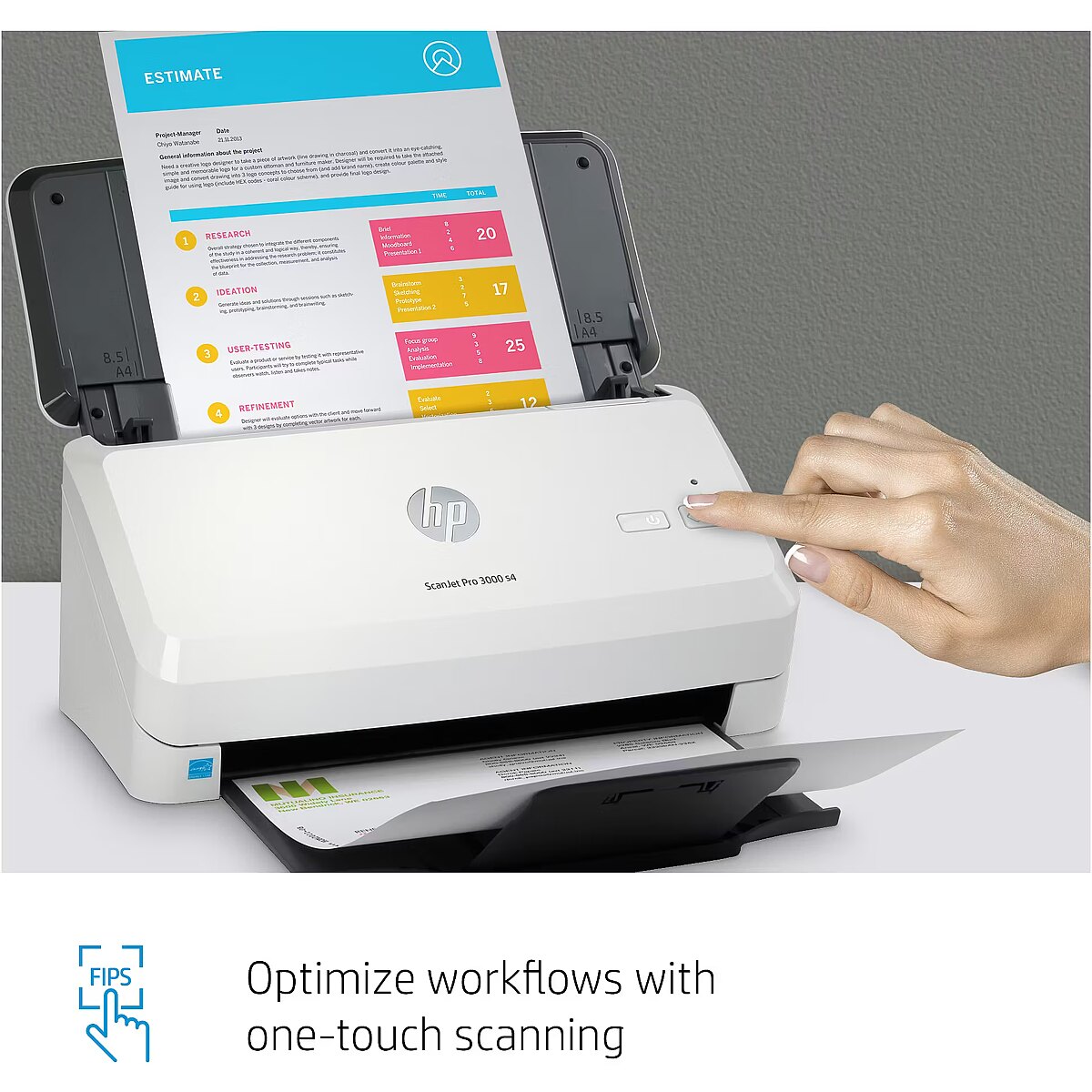 ProdDesc - HP ScanJet Pro 3000 s4 Scanner - A4 Color 600dpi, Sheetfeed Scanning, Automatic Document Feeder, Auto-Duplex, OCR/Scan to Text, 40ppm, 4000 pages per day