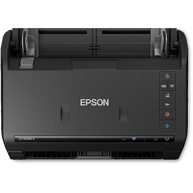 LongDesc - WorkForce ES-500WIIKeep your business organised with this high-speed, A4, auto-duplex scanner with auto-sheet feed. Scan from PCs, Macs, smartphones and other devices from any room, thanks to its wireless and USB 3.0 connectivity.Save timeDouble-sided scanning in a single pass, 50-sheet auto document feeder and scan speeds of 35ppm/70ipm1 mean you'll be able to complete your work quickly and save time.Wireless and smart scanningScan direct from your computer to network folders, cloud accounts and email with the Epson ScanSmart software . Alternatively, with the Epson Smart Panel app you can scan directly to any folder in your cloud accounts using just your tablet or phone or simply scan to the device itself.Flexibile and versatileScan all your business documents from business cards and receipts to invoices and letters. The auto feeder is compatible with all media weights from 27-413 gsm and will automatically stop feeding if there is a jam to prevent damaging any important documents.IntelligentIntelligent colour and image adjustments - auto crop, skew correction, blank page and background removal with Epson’s Image Processing Technology.Peace of mindWith a 4,000 pages per day duty cycle and inbuilt sensors for paper jams, double-feeding, and dirt-on-glass detection, all documents are kept safe and scanned to the highest quality.Powerful software includedThe intuitive Epson ScanSmart scanning software lets you preview, email, upload and more. Create searchable PDFs, and editable Word, Excel and PowerPoint files with the built-in Optical Character Recognition (OCR) software.