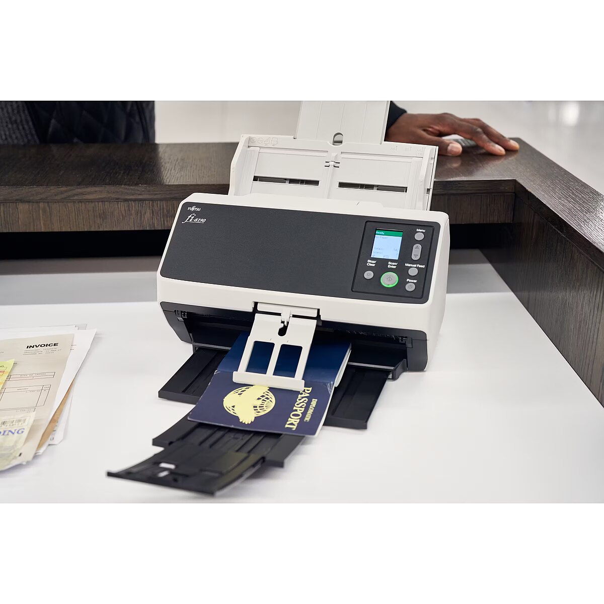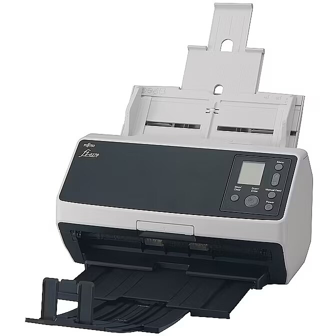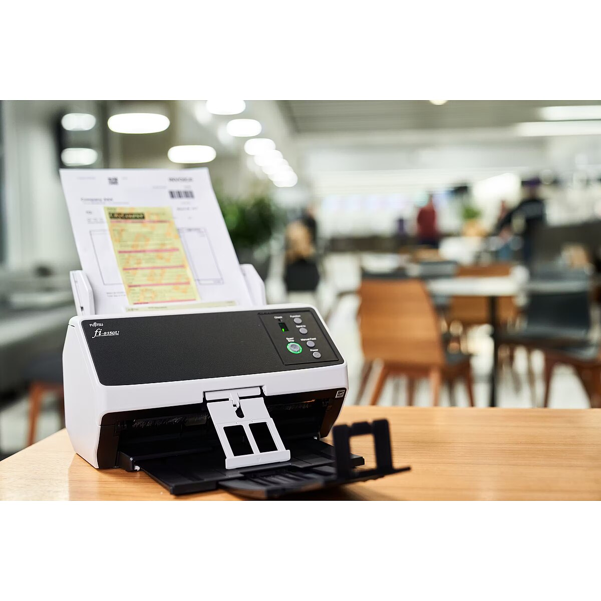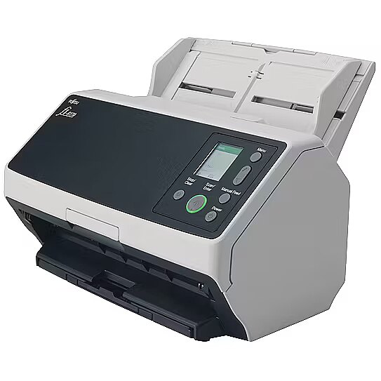 LongDesc - As the evolution of the market’s leading image scanners, the Ricoh fi-8000 series redefines the standard for business scanning by solving today’s challenges and providing a long-term strategic advantage for organisations adapting to the future of work. Boasting breakthrough optical technology and a wide range of innovative new patents, the Ricoh fi-8000 series supports digital transformation with industry-leading accuracy and user experience, built on technology you can trust.Market defining performanceClear Image CaptureClear Image Capture is a breakthrough proprietary optical technology innovation debuting in the Ricoh fi-8000 series. True image rendering and colour shift prevention deliver industry leading OCR accuracy rates and image quality that surpasses the capabilities of standard CIS or CCD alone. And, as a more efficient optical technology, power consumption for every scan is reduced. Clear Image Capture also enables capture of the widest range of document types from 20gsm-465gsm – including A4 envelopes, cards, passports, or booklets up to 7mm thick. Tech you can trustAutomatic Separation ControlOur patented Automatic Separation Control delivers the perfect feed so organisations can scan larger volumes and mixed batches of documents with confidence. By sensing their weight and adapting and adjusting torque automatically, mis-feed and mid-scan interruptions are eliminated. This guarantees feed stability for different document formats and saves users from wasting time sorting different document types into individual batches. It also enables the 100 sheet ADF capacity and higher speeds for more efficient, high-throughput workgroup scanning.A scanner driver that cleans and optimises image files for faster, lower-cost access and storage.PaperStream CaptureStreamlines and automates capture into workflows.PaperStream ClickScanAd-hoc scanning with a single touch.Scanner Central AdminScalable real-time, remote management of up to 1,000 scanners.Flexible connectivity optionsChoose between PaperStream IP Net for flexible, adaptable capture architectures, and PaperStream NX Manager for centralised, server-based capture. Co-creation servicesFor integration support or custom solution development.Industry leading paper protectionThe Ricoh fi-8000 series protects documents from damage using innovative new technology. Patented Image Monitoring identifies overly skewed documents in real time and halts the scanning process before they can be damaged. ISoP (excluding fi-8150, fi-8250 models) will do the same if it detects any abnormal feed sounds. While Lag Detection ensures documents are feeding through at the expected speed. Specialist passport capture capabilityThe patented feeding mechanism ensures safe capture of passports without a carrier sheet, while MRZ recognition ensures consistently accurate capture of personal data.Real-world productivity without equalEnhanced multi-feed detectionUnnecessary stoppages in the scanning process are eliminated by automatically recognising and ignoring cards, stickers, and small defined attachments. This patented technology is an evolution beyond standard multi-feed detection which stops when anything beyond a single sheet is identified during feed through.High speed, high throughputFast boot time and up to 90ppm duplex mean the Ricoh fi-8000 series delivers a highly efficient scanning process for the ultimate in workgroup productivity. Incorporating USB 3.2 and gigabit LAN connectivity also makes rapid file transfer possible.Overscan ControlAutomatically adjust scanning area to prevent image loss on skewed documents, removing the need to ever have to rescan slightly skewed documents. Three precisely positioned sensors detect document edges and adjust the scanning area accordingly to fit the document, even if it has been inserted at a skewed angle. Users can scan safe in the knowledge that the entire document will be scanned every time and no part of the image will ever be lost. Urethane rollersUrethane rollers are resistant to absorption of oil from NCR paper, unlike EPDM rollers which can swell and affect feed torque. Maintaining their integrity avoids misfeed and jams for consistent feed performance. Stacker supportErgonomically designed stacker support neatly stacks scanned documents for faster, easier post-scan filing.Software that elevates efficiency and productivityPaperStream IP