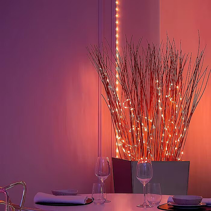 MediumDescription EN - Add versatile light and color to your space with smart LED lights Twinkly Dots. Whether you want cool but subtle lighting decorations, are tricking out your gaming room, or are planning a romantic dinner, create just the right vibe with Dots. Available in multiple lengths and with various numbers of bulbs, this miniaturized, flexible string of premium, app-controlled, addressable LEDs with a flat, matte head were designed for extraordinary brightness and color quality in over 16 million colors. Perfect for use both indoors and outdoors.