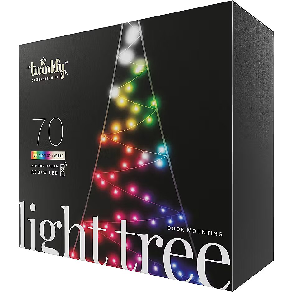 MediumDescription EN - Light up your Christmas with Twinkly Light Tree 2D, a unique and innovative app-controlled 2D tree for your connected home. With a height of 2 meters, consisting of 300 RGB + Warm white 5 mm clear and diffused flat lens LED, specifically designed with a flat head to reach impressive brightness levels and perfect tone of color, Twinkly Light Tree goes beyond the traditional decorative Christmas lighting. Light Tree is easy to assemble, it doesn’t require any additional external support or tools, as it comes with everything you need – bringing a magical feel to any outdoor environment. Like all Twinkly products, Light Tree can be mapped and every single LED can be controlled individually, allowing you to create and reproduce unique effects, gradients, and color animations – Light Tree becomes your screen.