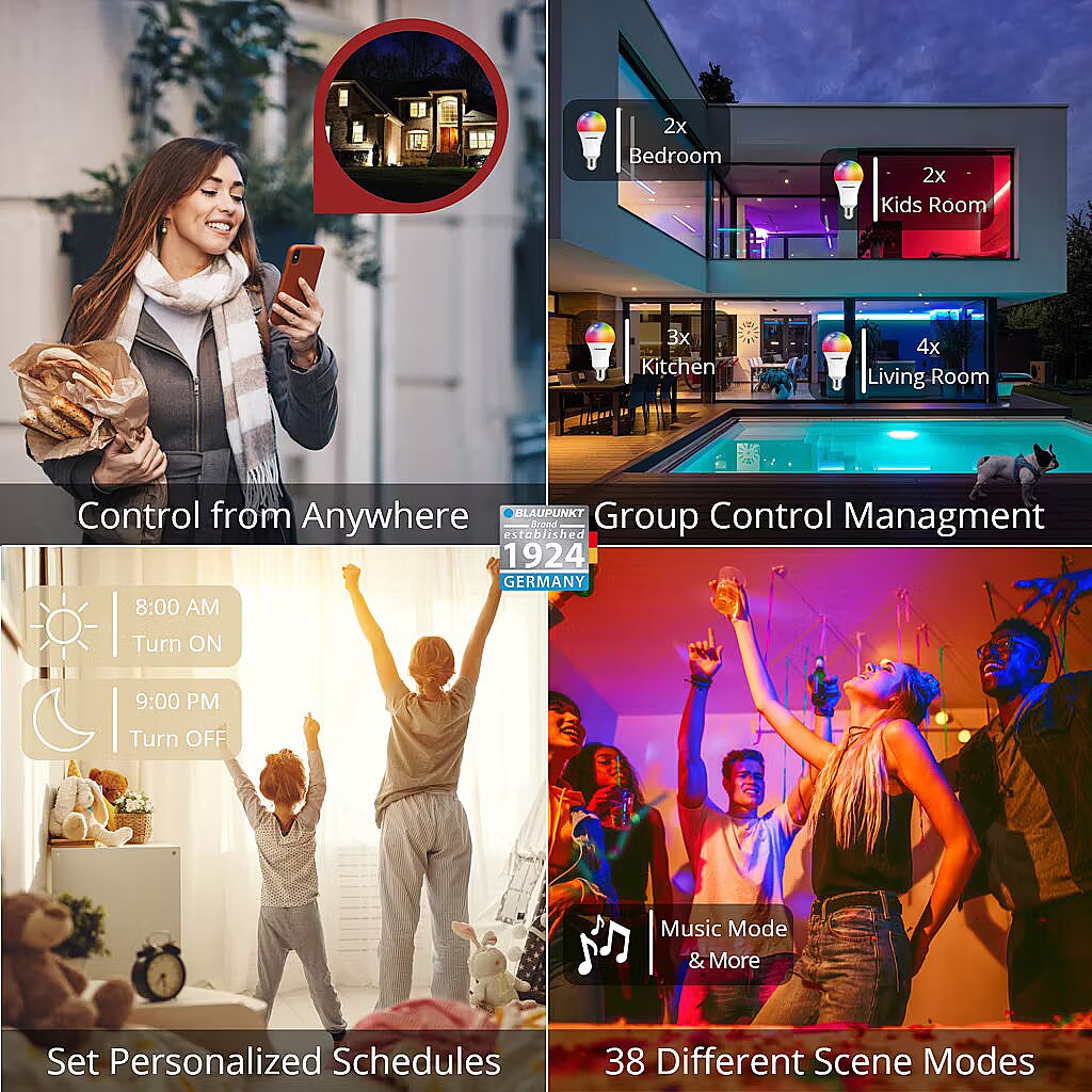Use Blaupunkt smart WiFi light bulb as main light in any room. The colour temperature is tunable from 2700 to 6500 kelvin (warm to cool white). Colour Mode for mood light