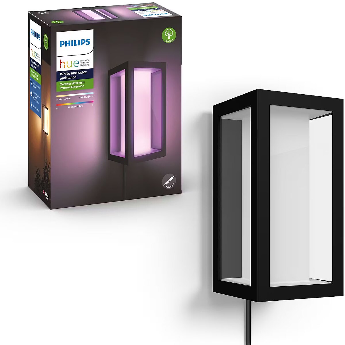 ShortSummaryDescription - Philips Hue White and colour ambience Impress Outdoor wall light, Outdoor wall lighting, Black, LED, Metal, Non-changeable bulb(s), Variable