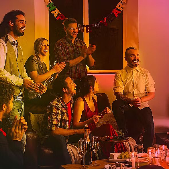 Schedule your lights for easy automation. Combine this with other Tapo devices for smooth control, especially when decorating your home with even lighting. Voice control