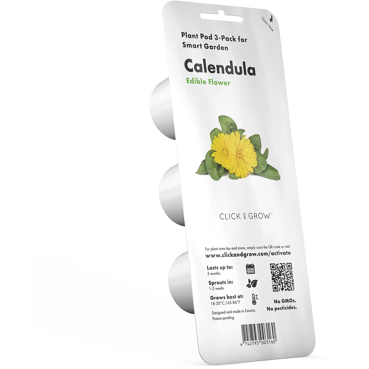 description_en - Grow the healing Calendula in your indoor garden! With both decorative and healing properties, Calendula is truly a multi-faceted addition for your indoor garden. Calendula has been grown in the gardens of Europe since the 12th century. Mainly, the flowers were used and made into extracts, tinctures, balms, salves and applied directly to the skin. Calendula's flower is edible - Calendula's whole plant is full of antioxidants, buds and petals are especially rich in triterpenes, flavonoids, polyphenols and carotenoids. They add colour to fresh salads and other cold dishes, including ice cubes. Calendula tea brewed from dried buds and petals is a natural remedy for anxiety and stress. Click & Grow Calendula's benefits: Growing Calendula with Click & Grow is zero hassle The smart garden takes care of watering, light and nutrients No GMO's; herbicides or pesticides are used in Click & Grow products The plant pods already contain all necessary nutrients and seeds, no need to add anything manually. Calendula is high in antioxidants and other healthy compounds Get closer to nature by growing your own greens at home 365 days a year NB! The product photo is illustrative.