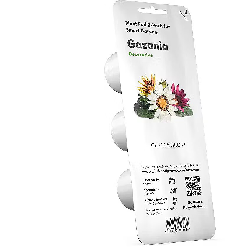 description_en - Grow colorful Gazania at home! Give your home a splash of color by growing gazania flowers. With their cheerful, daisy-like appearance and easygoing nature, these soft climate perennials will instantly make your space more inviting. Gazania flowers close in the evening and come back to full bloom the next morning, a natural plant behavior called nyctinasty. It's a perfect plant for children to explore the wonders of nature. Click & Grow Gazania benefits: Bright, cheery colors to make your home more welcoming Gazania comes with a fun factor, as the flowers close for the night (for bedtime) It's a mix of colors from yellow to orange to red. Starts flowering just fifty days after planting Watch it's deep green foliage emerge approximately two weeks after planting Super easy to grow in your smart garden in every climate NB! The product photo is illustrative.
