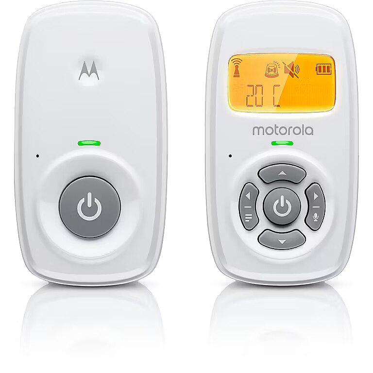 Name - Motorola | Audio Baby Monitor | AM24 | 1.5” LCD black and white display with orange backlight; 1.5” LCD black and white display with orange backlight; Connect one baby unit to two parent units to monitor from different rooms; Rechargeable portable parent unit with 10 hours playtime; Two-way talk with high-sensitivity microphone; Room temperature monitoring | White