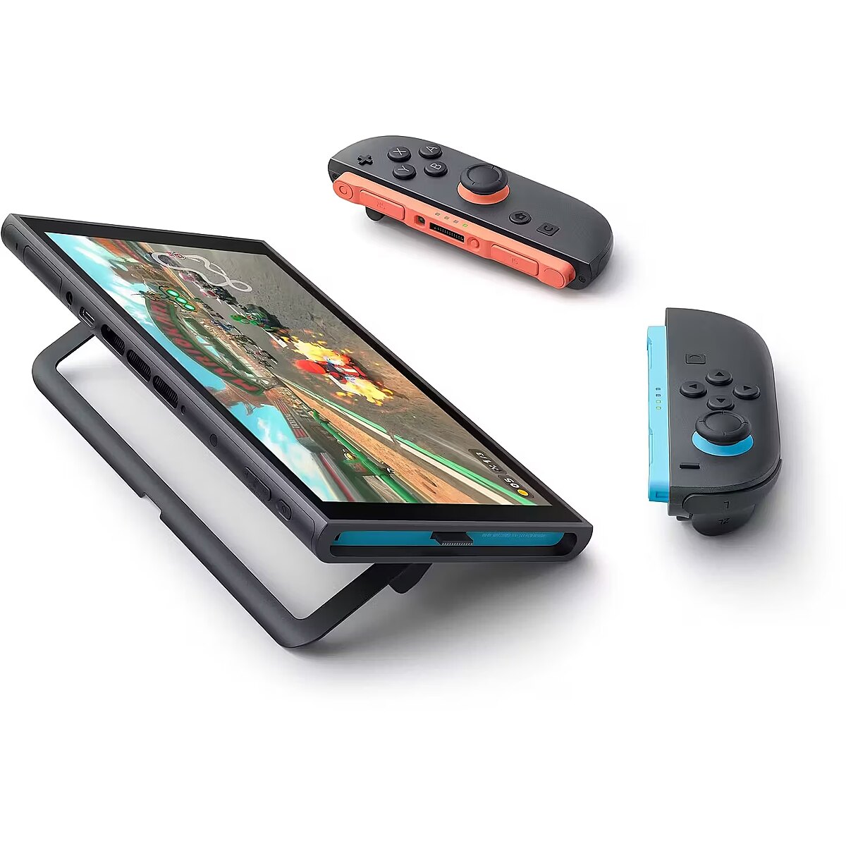 LongSummaryDescription - Nintendo Switch 2. Platform: Nintendo Switch 2. Product colour: Black, Gaming control technology: Analogue / Digital, Gaming control function buttons: D-pad, Home button, Menu button, Power button. Display: LCD, Display diagonal: 20.1 cm (7.9"), Display resolution: 1920 x 1080 pixels. Storage media type: Flash, Built-in memory capacity: 256 GB, Compatible memory cards: MicroSD (TransFlash), MicroSDXC. Frequency band: 2.4 GHz, Wi-Fi standards: Wi-Fi 6 (802.11ax)