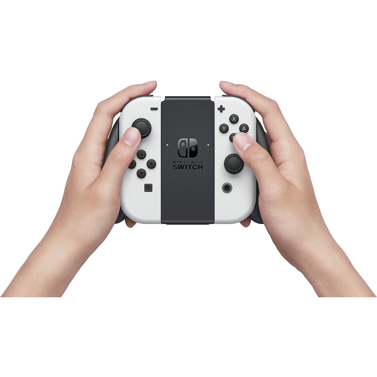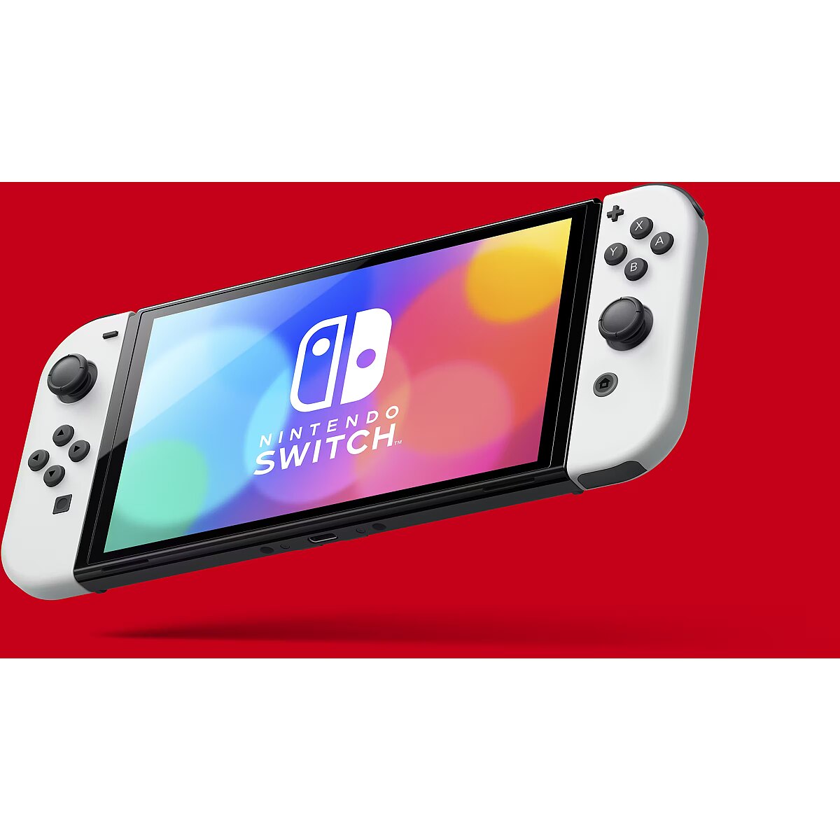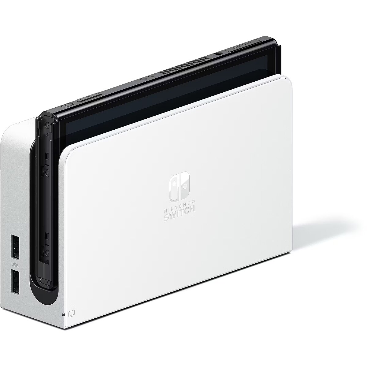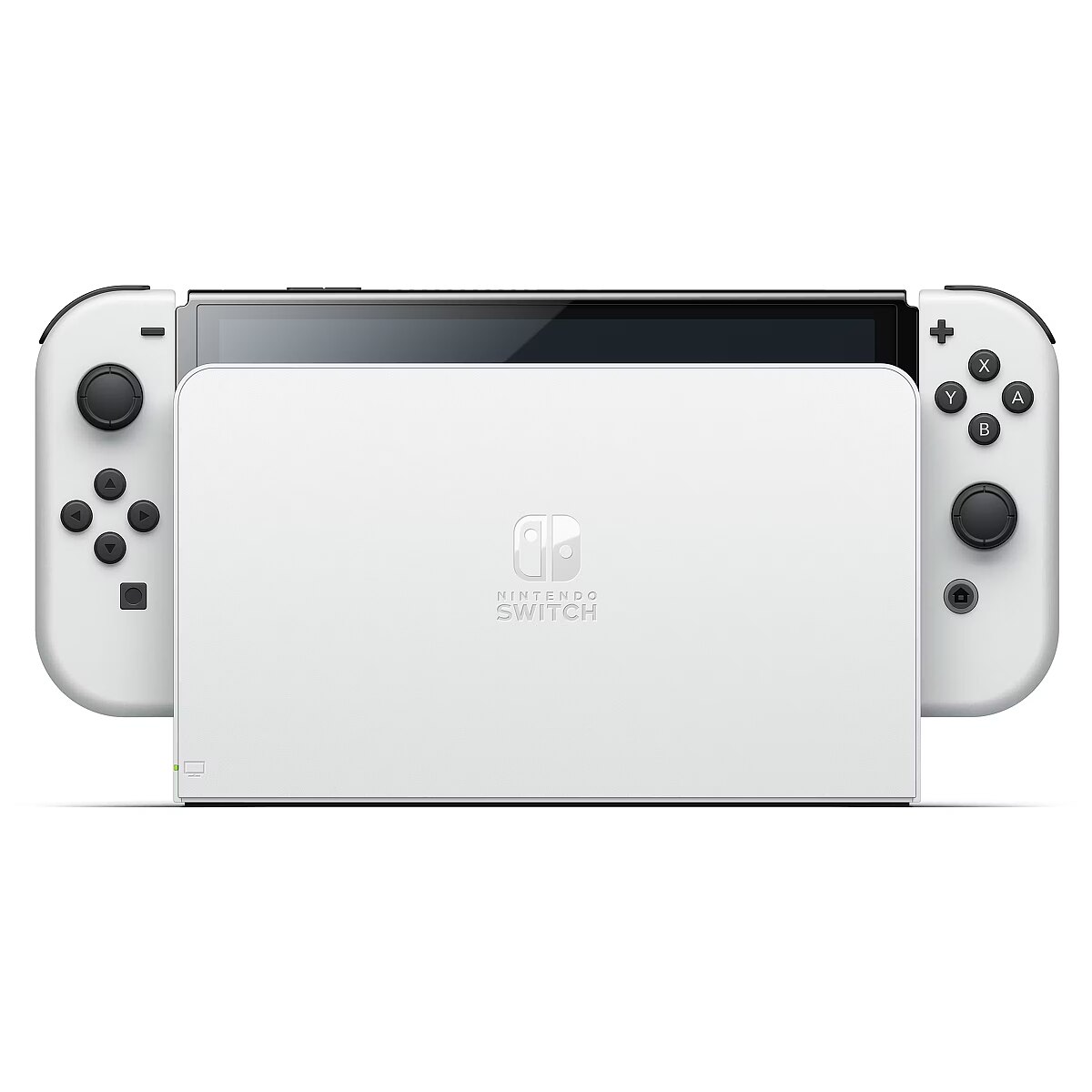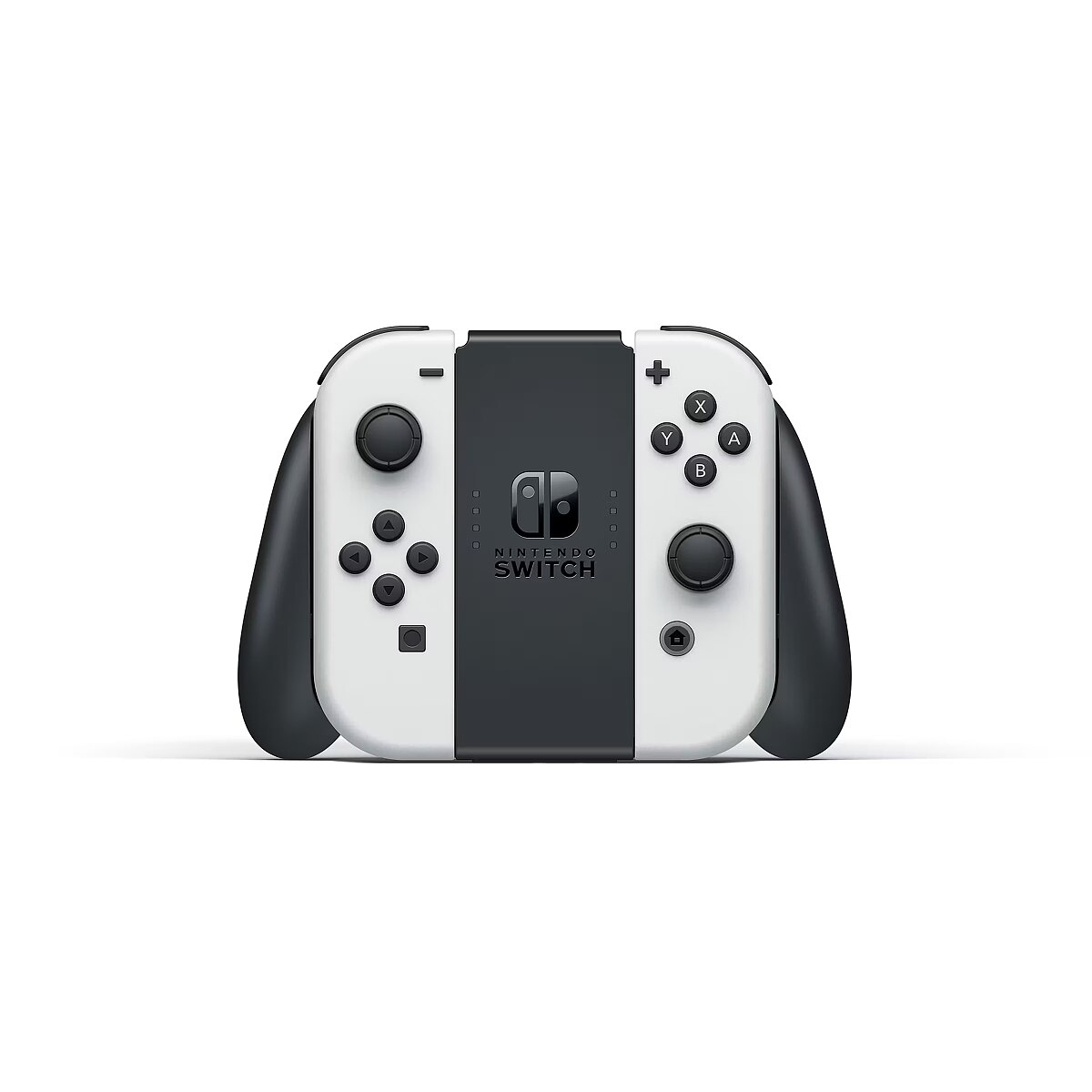 Description - Nintendo Switch – OLED Model White set Features white Joy-Con controllers, a black console, and a white dock. Play at home on the TV or on-the-go with a vibrant 7-inch OLED screen with the Nintendo Switch – OLED Model . In addition to the screen with vivid colors and sharp contrast, the Nintendo Switch – OLED Model includes a wide adjustable stand, a dock with a wired LAN port for TV play, 64 GB of internal storage, and enhanced audio.