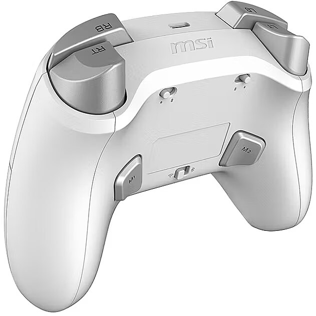 Description - MSI FORCE GC300 WIRELESS WHITE The MSI FORCE GC300 WIRELESS, designed for gamers who demand accuracy and comfort, features 2-level Hall effect triggers for precise responses and smooth gameplay, along with two rear programmable buttons for rapid reactions. The immersive haptic feedback from dual vibration motors enhances the sensory in-game experience, complemented by an anti-slip texture with secure ergonomic handling, allowing for a fatigue-free playtime of up to 20 hours of uninterrupted wireless gameplay. Gamers can enjoy versatile 2.4 GHz wireless, Bluetooth, and USB-C connectivity options. Advanced configurations are enabled through the exclusive MSI Center, maximizing the potential of this controller. Smooth Accuracy Designed for flawlessly smooth and accurate movement, these thumbsticks offer responsive, precise control, ideal for executing continuous maneuvers with seamless inputs for peak performance and uninterrupted gameplay, keeping gamers sharp and responsive in any in-game scenario while enhancing the experience with unmatched precision. Adapt to Compete Experience accuracy and responsiveness with 2 levels of magnetic Hall effect triggers, ranging from light taps to full pulls for various game needs. Whether it's a full pull for immersive racing or a quick click for fast-paced shooters, these adaptive triggers register with precision, giving gamers a competitive edge. Unmatched Edge 2 ergonomically positioned rear buttons allow gamers to customize their setup with button remapping for optimal efficiency. This customization ensures rapid responses and seamless execution of complex commands, giving gamers the critical edge to dominate any gameplay scenario. Immerse the Game 2 responsive vibrating motors provide real-time sensory input, immersing gamers in tactile feedback that lets them feel engine rumbles, weapon recoil, and collision impacts. This haptic feedback dynamically fosters a stronger connection to in-game actions, deepening immersion and creating a more engaging, realistic experience. Comfy Non-stop Gaming Experience uninterrupted, fatigue-free gaming with an anti-slip grip for up to 20 hours while connecting a headset, thanks to an ergonomically lightweight design that weighs only 230g and accommodates various hand shapes. This allows gamers to dive into marathon sessions without frequent recharges or strain while enjoying immersive isolation for both intense gameplay and casual communication. LONG-LASTING COMPANION Rated for millions of clicks, these switches ensure long-lasting performance for any gameplay, providing satisfying tactile feedback with each press. They withstand intense gaming sessions while maintaining consistent responsiveness, allowing gamers to stay focused and perform at their best.