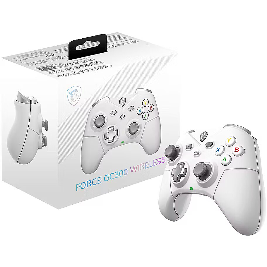 LongDesc - The MSI FORCE GC300 WIRELESS WHITE, designed for gamers who demand accuracy and comfort, features 2-level Hall effect triggers for precise responses and smooth gameplay, along with two rear programmable buttons for rapid reactions. The immersive haptic feedback from dual vibration motors enhances the sensory in-game experience, complemented by an anti-slip texture with secure ergonomic handling, allowing for a fatigue-free playtime of up to 20 hours of uninterrupted wireless gameplay. Gamers can enjoy versatile 2.4 GHz wireless, Bluetooth, and USB-C connectivity options. Advanced configurations are enabled through the exclusive MSI Center, maximizing the potential of this controller.Smooth AccuracyDesigned for flawlessly smooth and accurate movement, these thumbsticks offer responsive, precise control, ideal for executing continuous maneuvers with seamless inputs for peak performance and uninterrupted gameplay, keeping gamers sharp and responsive in any in-game scenario while enhancing the experience with unmatched precision.Adapt to CompeteExperience accuracy and responsiveness with 2 levels of magnetic Hall effect triggers, ranging from light taps to full pulls for various game needs. Whether it's a full pull for immersive racing or a quick click for fast-paced shooters, these adaptive triggers register with precision, giving gamers a competitive edge.Unmatched Edge2 ergonomically positioned rear buttons allow gamers to customize their setup with button remapping for optimal efficiency. This customization ensures rapid responses and seamless execution of complex commands, giving gamers the critical edge to dominate any gameplay scenario.Immerse the Game2 responsive vibrating motors provide real-time sensory input, immersing gamers in tactile feedback that lets them feel engine rumbles, weapon recoil, and collision impacts. This haptic feedback dynamically fosters a stronger connection to in-game actions, deepening immersion and creating a more engaging, realistic experience.Comfy Non-stop GamingExperience uninterrupted, fatigue-free gaming with an anti-slip grip for up to 20 hours while connecting a headset, thanks to an ergonomically lightweight design that weighs only 230g and accommodates various hand shapes. This allows gamers to dive into marathon sessions without frequent recharges or strain while enjoying immersive isolation for both intense gameplay and casual communication.LONG-LASTING COMPANIONRated for millions of clicks, these switches ensure long-lasting performance for any gameplay, providing satisfying tactile feedback with each press. They withstand intense gaming sessions while maintaining consistent responsiveness, allowing gamers to stay focused and perform at their best.OPTIMIZE GAMING POTENTIAL - MSI CenterMaximize the potential of MSI FORCE controllers for a real-time gaming experience with just a few clicks, customizing the controller settings to suit gamer preferences. The software includes advanced calibration tools to address, trigger configuration, and rear button mapping, ensuring precise control and responsiveness. MSI Center software offers a user-friendly interface that helps gamers get the most out of their gaming sessions, delivering a seamless experience.