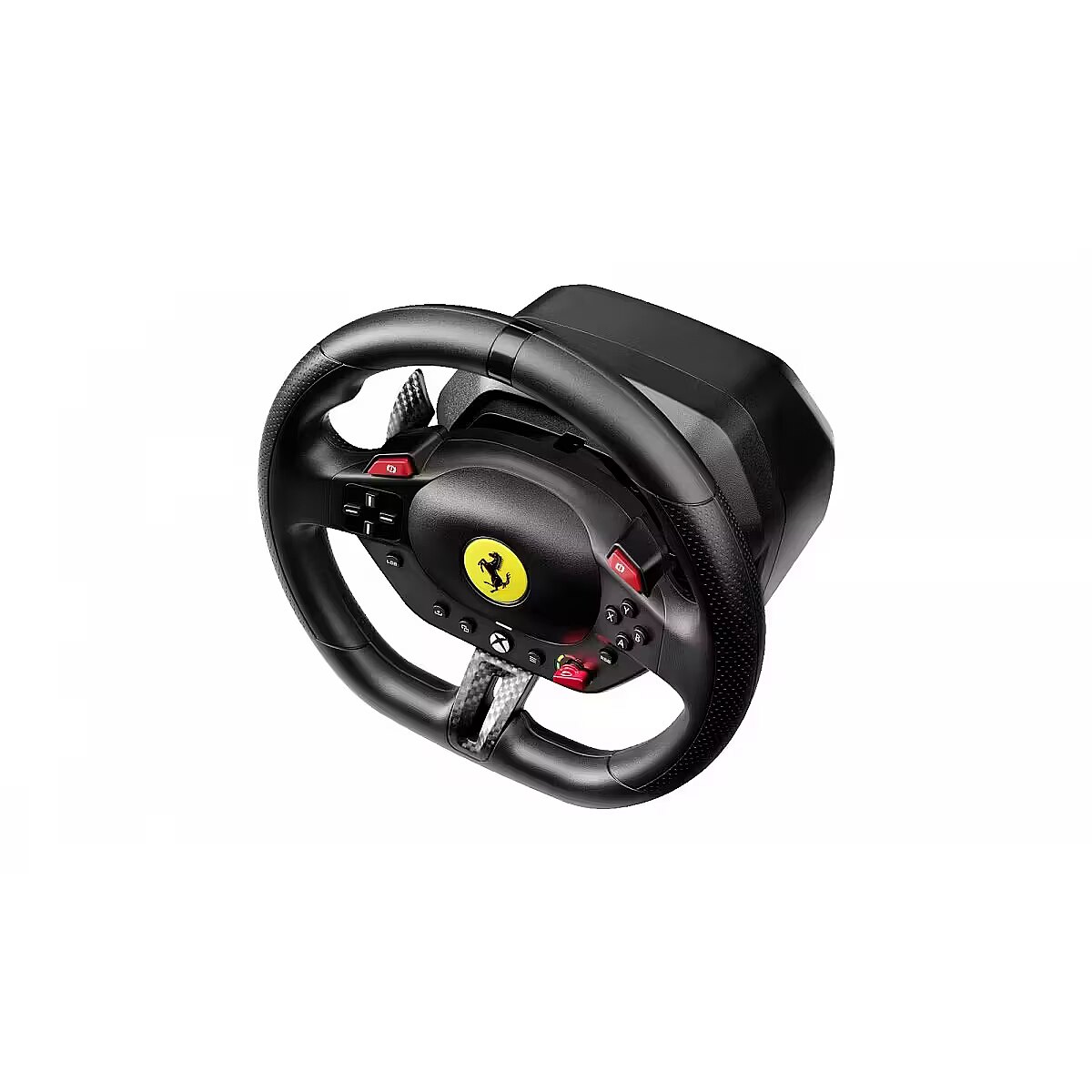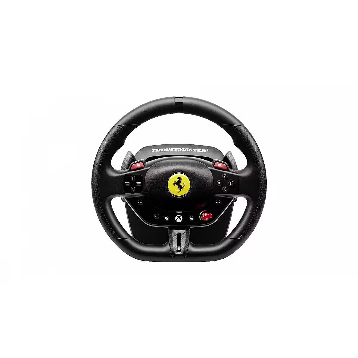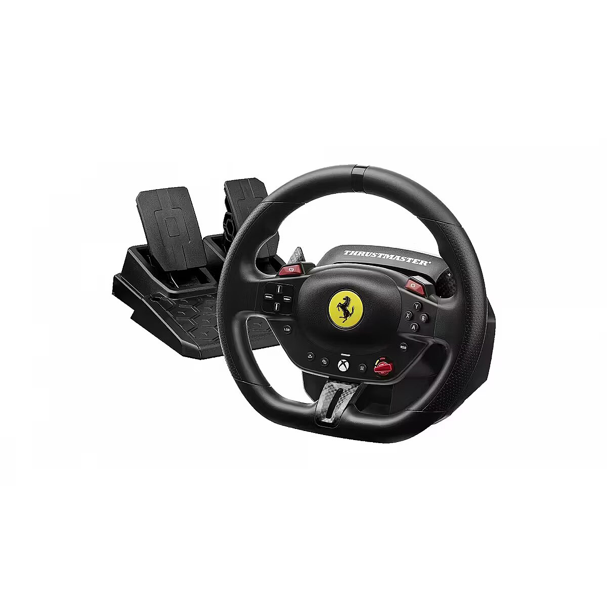 LongDesc - Joy in every ride!Get a dose of joy in every ride! Drive like a real race driver with T98 Ferrari 296 GTS: inspired by the Ferrari’s steering wheel with recentering technology, 240° of rotation and 3 driving profiles to suit all user levels.Under the hoodInspired by the Ferrari 296 GTSDrive like a real race driver with this official racing wheel (7:10 scale) inspired by the Ferrari 296 GTS. The wheel rim (10″ / 25.5 cm in diameter), with its imitation carbon accents and high-performance paddle shifters, will give you a truly lifelike experience of driving a Ferrari. Join the Tifosi and drive the world’s most famous Italian cars. Forza Ferrari!This product is officially licensed by Ferrari.A more immersive racing experienceBungee cord technology automatically returns the wheel rim to the centered position and provides linear resistance for real driving sensations. Thanks to its 240° rotation angle (compared with 180° for a standard gamepad), you can be more precise in your maneuvers and take winning trajectories. The racing wheel also features all the buttons found on a standard gamepad, for total control in games.Your racing games will be more intense and immersive than ever!3 driving support profilesThe selector dial inspired by Ferrari’s iconic Manettino lets you switch between the 3 driving support profiles: from the most realistic to the easiest to use. In this way, T98 Ferrari 296 GTS adapts to all gamer profiles — from beginners to experienced drivers. Switch from one profile to another on the fly and share unforgettable moments with family and friends.Compact and easy to installThe racing wheel can be installed quickly and without any tools, thanks to its clamping system for mounting on desks and tables (up to 1.8″ / 4.5 cm thick). Its compact, space-saving design makes it easy to put away after each gaming session. No additional software is required: just plug and play!Pedal set with Hall effect sensorsA 2-pedal pedal set with accelerator and brake is included. The pedals feature Thrustmaster’s patented H.E.A.R.T. Hall effect sensors to ensure that the product will retain its razor-sharp precision for years to come. The pedal set’s compact design allows it to even be installed and used in small spaces.Great for Forza Horizon 5 on Xbox Series, Xbox One and PCAs T98 Ferrari 296 GTS is an officially-licensed Microsoft product, the racing wheel functions flawlessly on Xbox Series and Xbox One. It is also compatible with PC (Windows 10/11). T98 Ferrari 296 GTS is great for Forza Horizon 5, and is plug and play in most racing games*.*Complete list available on the official Thrustmaster website.