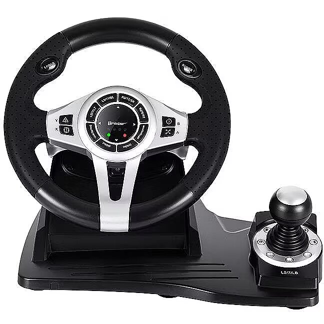 The Roadster gaming steering wheel, made of high-quality materials, is a reliable and very durable device. Buttons for maneuvers and an 8-way analog D-pad have been integrated into the steering wheel for quick and convenient access.