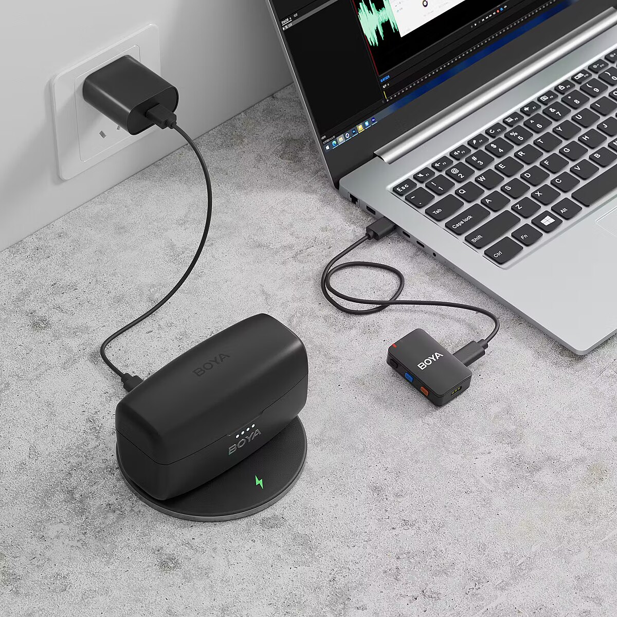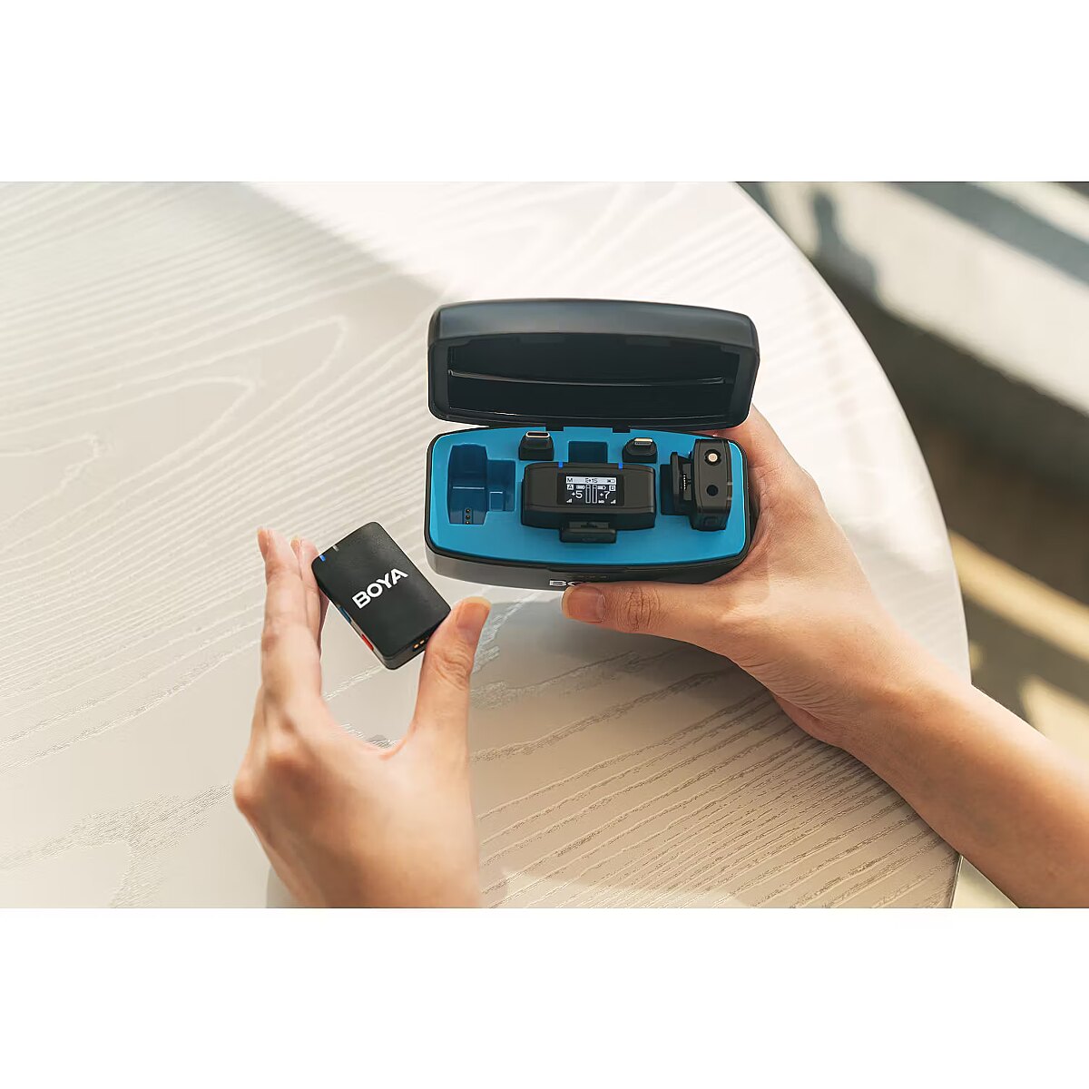 description_en - The BOYAMIC is a portable 2.4GHz wireless microphone system. It features high-performance noise cancellation, which is available for improving the recording effect in a noisy environment. It also boasts a remarkable onboard recording which is available for storing your recording files in real-time. The BOYAMIC is perfect for live streaming, vlogging, mobile journalism, and more. What's more, equipped with a low-cut filter, the wireless microphone can eliminate unwanted low-frequency noise (75Hz/150Hz or lower) in your recording. The BOYAMIC is a versatile 3in1 solution compatible with most recording devices. Simply plug it into iOS/Android phones, cameras, or computers without any transfers or learning curves. All-in-one wireless microphone system for cameras, computes and smartphones 8 GB memory storage & up to 15 hours of recording Wide-range 20–20 000 Hz frequency response – deliver exceptional high-quality sound Separate noise cancellation control – 48 kHz/24 bit HD audio format retained Up to 10 hours of operating time (about 6 hours when the onboard recording is enabled) Rechargeable up to 1,5 times with the charging case Up to 300 meters of wireless transmission Comes with a windproof capsule – minimize unwanted wind noise The transmitter can be attached to your clothes with the included magnet Rotating clasp-type fur windshield does not fall off easily Receiver’s 3.5mm headphone output – monitor your audio in real-time or playback audio