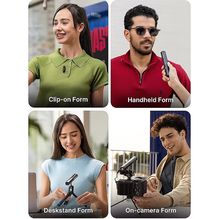 BOYA Magic also offers multiple levels of noise cancellation that adapt to your environment: Strong mode cuts up to 40 dB for loud noises like honks and waves, while Light mode reduces 15 dB of white noise in quieter settings, preserving natural ambience. 1 mic, 4 forms