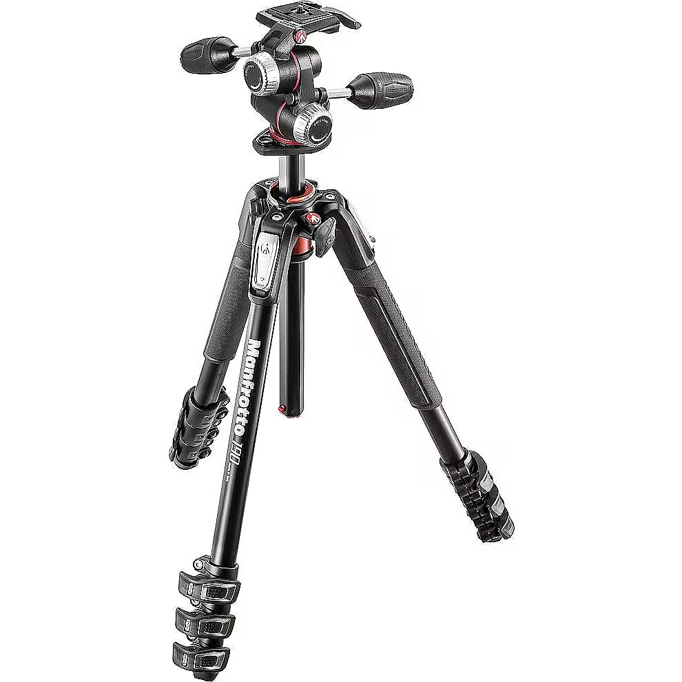 description_short_en - Manfrotto 190 series tripod with 3-way head 4-section aluminium legs Can carry up to 6 kg Maximum height of 173 cm 3-way head with retractable levers