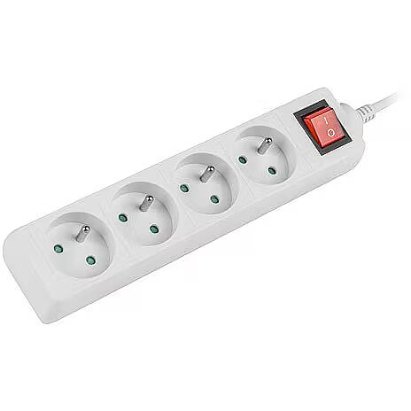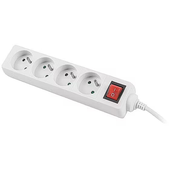 name - Power strip 1.5m, white, 4 sockets, with switch, cable made of solid copper