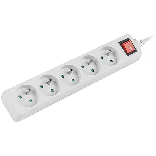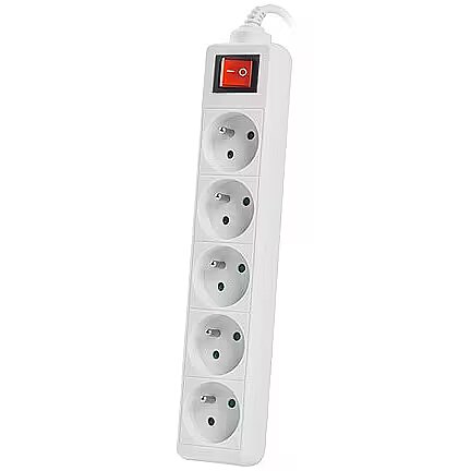 name - Power strip 1.5m, white, 5 sockets, with switch, cable made of solid copper