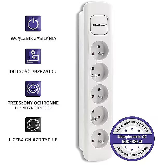Name - Qoltec Listwa zasilająca | 5 gniazd | 1.8m| Biała