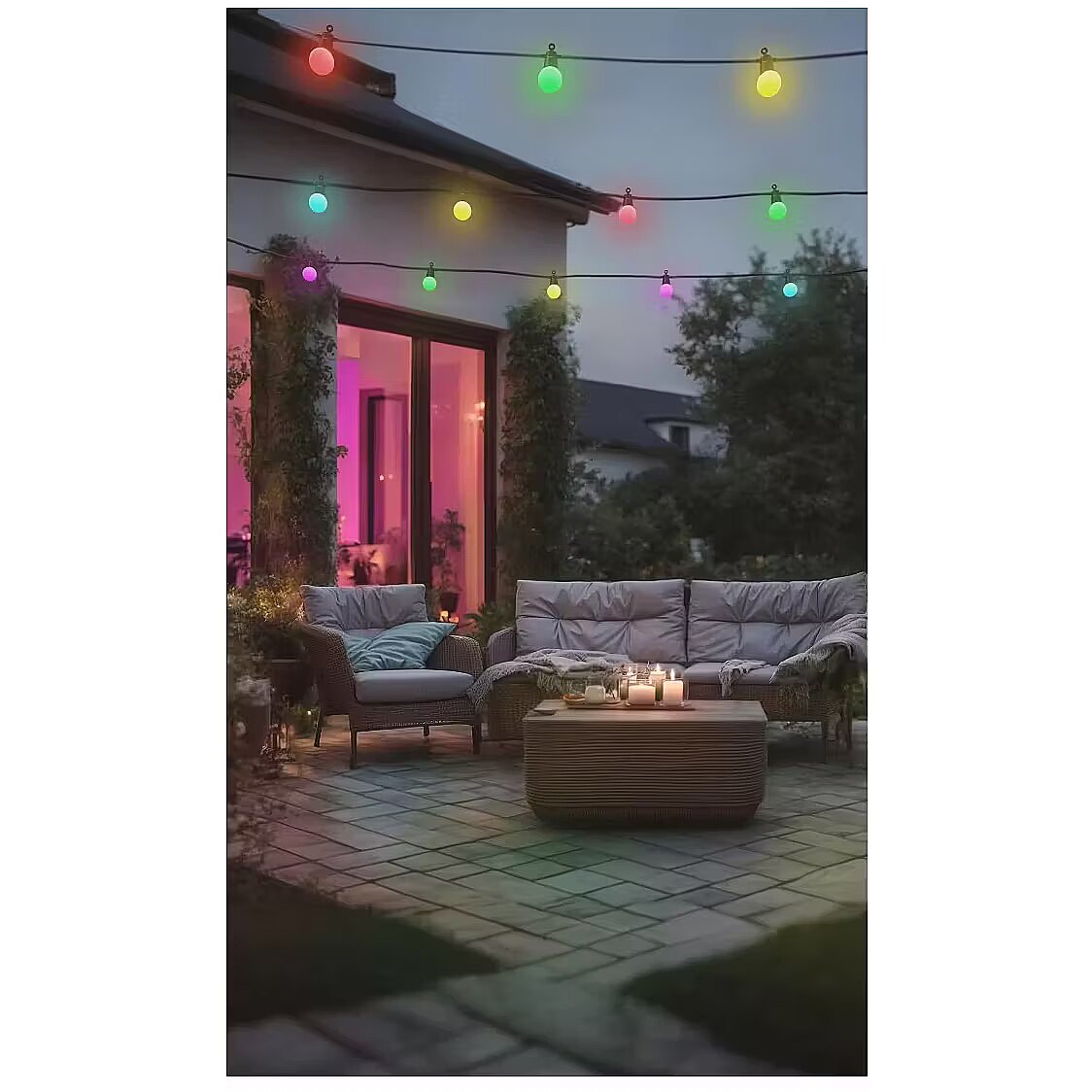 LongDesc - Lighting architecture for gardens, patios and balconies - the smart light chain offers 16 million colours and pre-configured scenes for a luminous work of art. So the garden can become a party venue or the balcony a spa.Lighting deluxe with the LED light chainWith the LED light chain, you can immerse yourself in a new dimension of creative lighting architecture - colourful, alternating colours, flashing, chasing lights - everything is possible with the 30 pre-set scenesExtendable light chainScrew the LED light chain to another light chain and enjoy the light show in XXLIP44 splash protectionFor a BBQ evening or garden party: on a balcony, a patio and in a courtyard, the outdoor wall light chain creates the perfect lighting atmosphere - with protection class IP44, the LED light chain is protected from splashing water from all directionsSmart Home without a gatewayOur smart light chain works without any gateway (hub): you don't need an additional device, and you save on extra costs since the light chain establishes a direct WiFi connection with the routerEasy operation from anywhere via the appBe it on the sofa or the train: with the Hama Smart Home app, you can control the LED light chain from anywhere and you have control over your lighting at all timesConvenient voice controlWhether it be Amazon Alexa, Google Assistant or Apple Siri: conveniently control all kinds of lighting effects via the smart light chain using voice commandsCan be extended at will with other Smart Home productsStep by step to the Smart Home: with the Hama Smart Home app, you can expand and network your smart home with any number of Hama Smart Home products