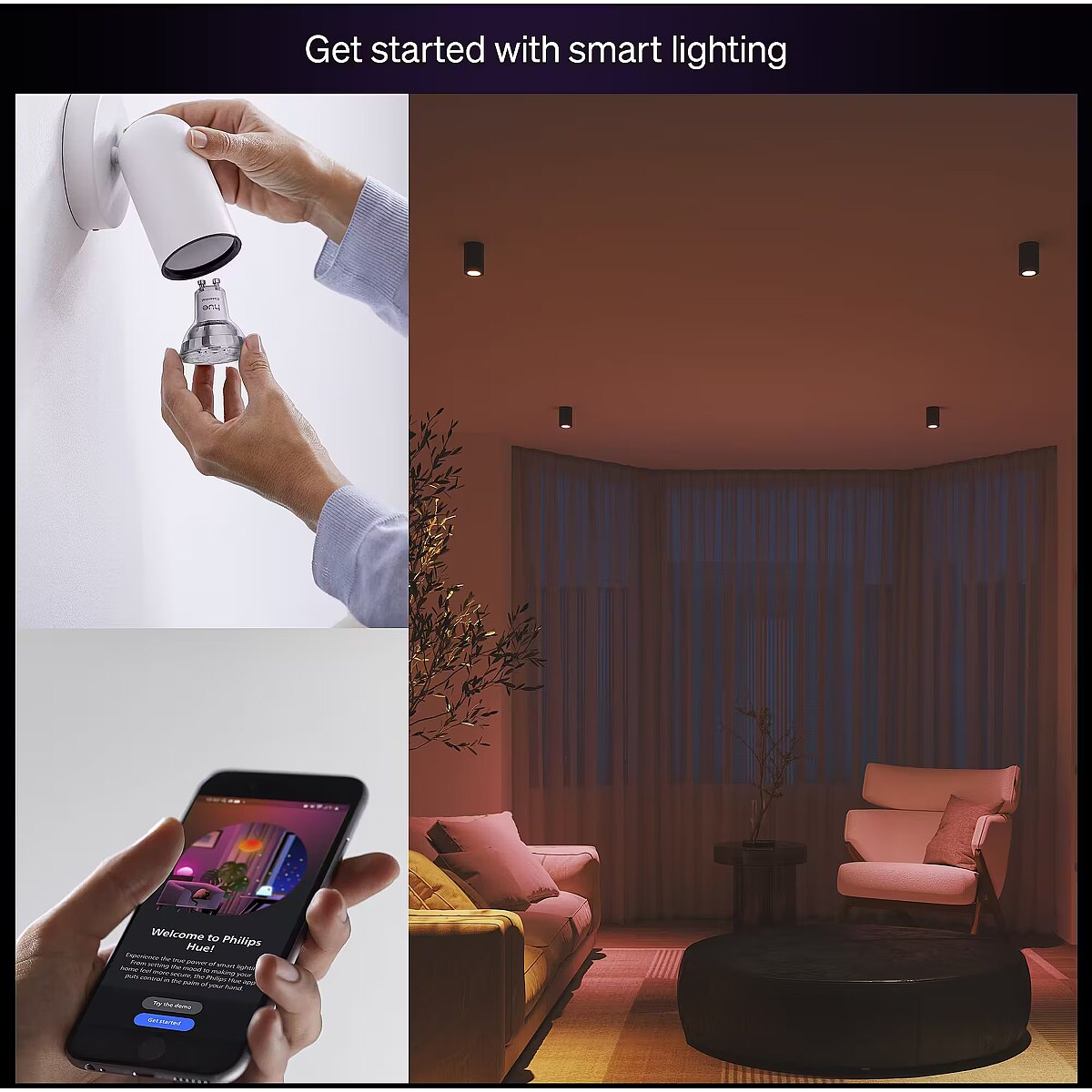 The GU10 bulb works seamlessly with the entire Hue ecosystem, including lamps, fixtures, and smart home systems (Google Assistant, Alexa, Apple Home).