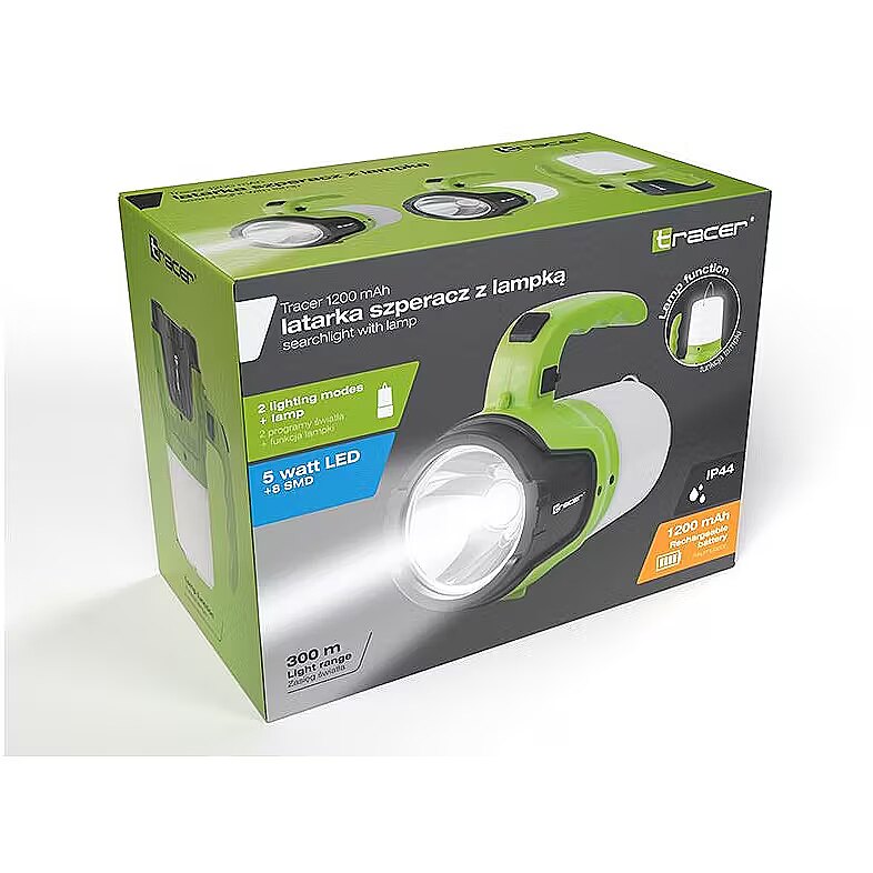 Description - Latarka Tracer szperacz z dodatkową lampką 1200 mAh