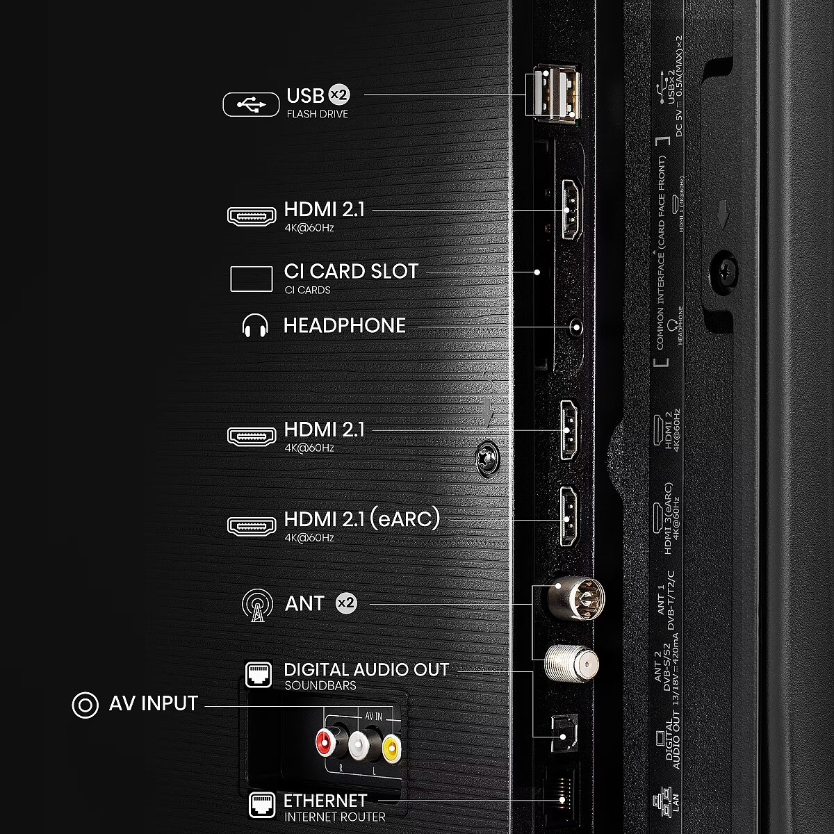 Łączność i złącza: Wbudowany tuner - DVB-T2 HEVC (cyfrowy naziemny)