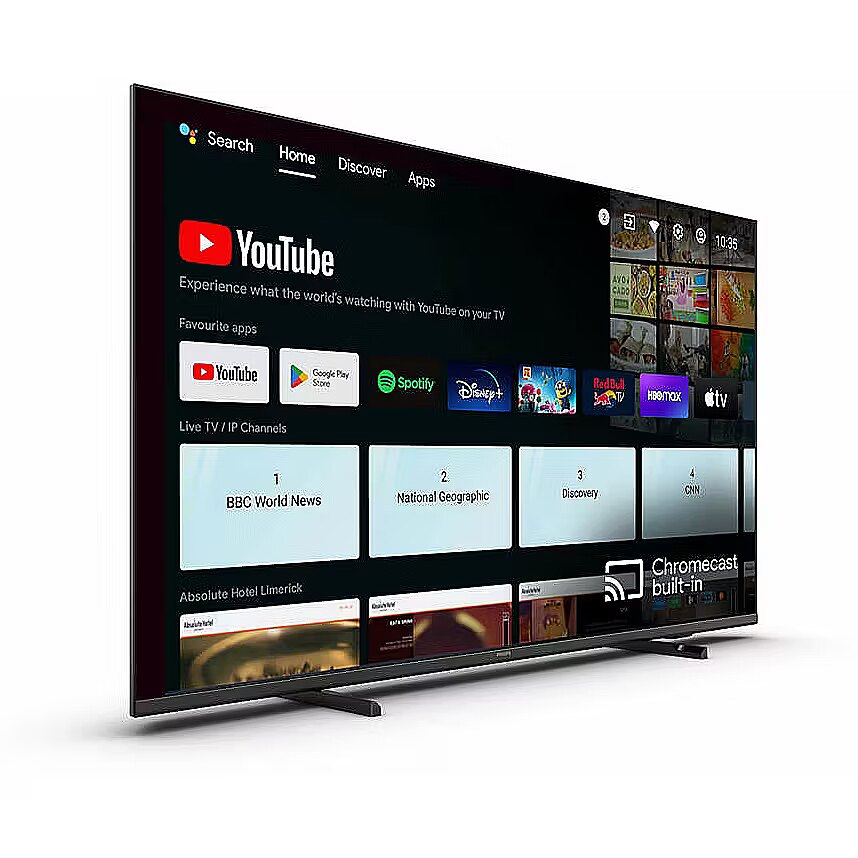 LongSummaryDescription - Philips 43HFL4518U/12. Display diagonal: 109.2 cm (43"), HD type: 4K Ultra HD, Display resolution: 3840 x 2160 pixels. Product colour: Black, Panel mounting interface: 100 x 200 mm. Operating system installed: Android TV, Video formats supported: AVC, AVI, H.264, HEVC, MKV, MPEG1, MPEG2, MPEG4, VP9, Audio formats supported: AAC, MP3, WAV, WMA, WMA-PRO. RMS rated power: 20 W, Audio decoders: DTS-HD. Wi-Fi standards: 802.11b, 802.11g, Wi-Fi 4 (802.11n), Wi-Fi 5 (802.11ac), Bluetooth profiles: A2DP, SBC