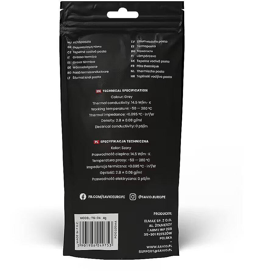 productName - Savio TG-04 4g heat sink compound Thermal paste 14.5 W/m·K