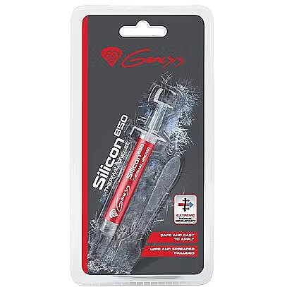 LongDesc - SILICON 850Genesis Silicon 850 is an extremely efficient thermal grease that will meet the high expectations of users looking for uncompromising solutions.THERMAL CONDUCTIVITY= 13,4W/m•KVery high thermal conductivity will allow use of full potential that cooler provides.EASY APPLICATIONSilicon 850 is not only paste, but also additional equipment. The set includes an easy-to-apply spatula and an alcohol-soaked cloth that will quickly and conveniently deal with the residue of previously applied paste.