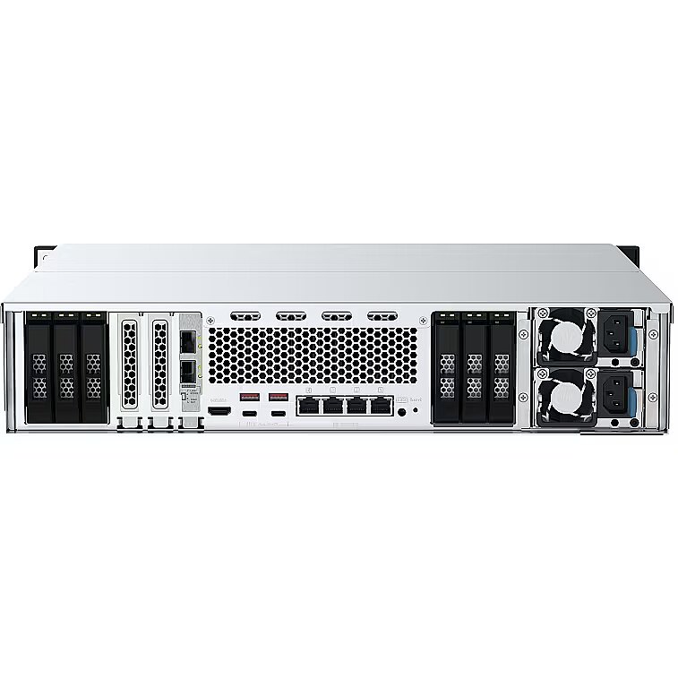 LongDesc - Modernize your IT using the ZFS-based, 25GbE-ready all-flash storage with high performance, high capacity, and low latencyThe 2U rackmount TS-h3088XU-RP provides a cost-efficient all-flash storage solution for tackling I/O-intensive and latency-sensitive enterprise applications. With 30 drive bays for 2.5-inch SATA 6Gb/s SSDs, built-in dual-port 25GbE SFP28 SmartNIC, four 2.5GbE LAN ports, PCIe expandability, and up to petabyte-scale storage capacity, the TS-h3088XU-RP satisfies uncompromising performance demands in virtualization, modern data centers, hybrid/multi-cloud applications, mission-critical backup/restore tasks, and file servers that allow thousands of simultaneous connections. The QuTS hero operating system features ZFS data reduction and SSD optimization technologies to get the utmost performance, lifespan, and efficiency from your SSD investments!Build high-performance storage infrastructure for IOPS-demanding applicationsVirtualizationEliminates storage bottlenecks for unstructured data and I/O intensive workloads; ideal for server virtualization and virtual desktop infrastructure (VDI).Data CentersDelivers ultra-low latency and high IOPS performance, providing response times within microseconds for data centers that host significant business-critical systems and data.Media and Entertainment (M&E) productionSatisfies smooth 4K/8K media streaming and post-production, empowering multimedia workflows with faster data transfer, access, and backup for boosted efficiency.High-capacity 30-bay SATA all-flash array that meets your business budgetWith a large storage capacity and high I/O performance, the TS-h3088XU-RP provides a flexible yet economical SATA all-flash storage solution. It is perfect for budget-conscious businesses who seek an affordable all-flash storage architecture to run multiple business-critical and performance-demanding applications.Powerful Intel® Xeon® W processors supporting up to 128 GB DDR4 ECC memoryFeaturing Intel® Xeon® W-1200 series processors, the TS-h3088XU-RP provides options of 6-core and 8-core models with frequency performance of up to 5.0 GHz and enormous processing power to drive virtual machine performance. The integrated Intel® AES-NI encryption engine helps maintain the security of NAS data without impacting performance. With dual-channel modules and 4 Long-DIMM slots, the TS-h3088XU-RP’s DDR4 ECC memory can be upgraded up to 128 GB for memory-intensive and complex multitasking workloads.Extreme all-flash performanceTo get the utmost performance from the TS-h3088XU-RP, we recommend:The front 24 SSDs should be configured as data pool #2 in RAID 6 or RAID 60 (yields the best performance). The rear 6 SSDs should be configured as pool #1 in RAID 6 (as system and app pool/small data storage).Dual 25GbE connectivity optimizes data transfer and VMware virtualization with iSERThe TS-h3088XU-RP provides four 2.5GbE RJ45 ports (supports 2.5/1GbE) and has a built-in dual-port 25GbE SFP28 SmartNIC (supports 25/10/1GbE) with the NVIDIA® Mellanox ConnectX-4 Lx SmartNIC controller that supports iSCSI Extensions for RDMA (iSER) to increase performance of data transfer between NAS and ESXi server and offload CPU workloads. With Port Trunking and Auto-Negotiation, the TS-h3088XU-RP empowers your organization with the bandwidth and reliability to allow thousands of endpoint users to smoothly access data stored on the NAS and also satisfy the most demanding applications, including data centers, virtualization, massive file transfer, high-speed backup/restoration, and multimedia transmission. The TS-h3088XU-RP is also ideally matched with QNAP’s managed and unmanaged 2.5GbE/10GbE switches to form high-speed, secure and scalable network environments without going over budget.Abundant I/O capability with PCIe expansionThe TS-h3088XU-RP features three PCIe Gen 3 slots that enable using numerous expansion cards for expanding application potential. (One slot comes pre-installed with a dual-port 25GbE network card.)Direct 4K HDMI output for multimedia and virtual machine contentThe TS-h3088XU-RP features Intel® UHD Graphics P630 that supports hardware decoding and real-time transcoding. The HDMI output supports up to 4K (4096 x 2160p) @30Hz, providing great benefits for applications like video production/editing or industrial design that demands high resolution and color realism as well as intensive media storage, transfer and display. By connecting the TS-h3088XU-RP to an HDMI display, you can directly watch multimedia content saved on the NAS, virtual machine OS desktop from Virtualization Station, or Ubuntu Linux Station desktop for system maintenance.Exceptional hardware to boost all-flash performanceThe TS-h3088XU-RP features high-level hardware with an expandable architecture to provide businesses with high performance and low latency access.ZFS-based QuTS hero operating system enhances NAS performance and data integrityQuTS hero combines the app-based QTS with the 128-bit ZFS file system to provide flexible storage management, comprehensive data protection, and optimized performance to tackle the complexity and performance demands of modern IT. From storage management, virtualization, to collaborative media workflows, QuTS hero streamlines your business-critical tasks.Data integrity is keyQuTS hero’s self-healing ensures data integrity and reliability. Write Once, Read Many (WORM) is also supported.Data reduction improves storage efficiency and performanceInline data deduplication, compression, and compaction reduce file size to conserve storage capacity and optimize performance.Multi-level cache technologyMain memory read cache (L1 ARC), SSD second-level read cache (L2 ARC), and ZFS Intent Log (ZIL) for synchronous transactions with power fail protection are simultaneously supported to boost performance and security.RAID Z enables robust data protectionMultiple RAID levels allow flexible capacity utilization. RAID Triple Parity and Tri