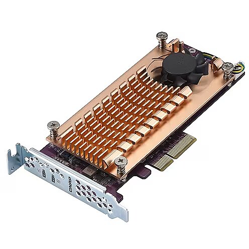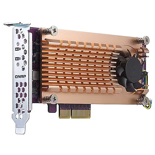 LongDesc - Fast, efficient, and easy-to-useThe efficient architecture of the QM2-2P-244A allows you to easily install NVMe SSDs and maximize their performance with a quiet cooling module.Keep SSD coolA quiet cooling module (heatsink and smart fan) keeps your SSDs running with dependable high performance.SSD cache accelerationAdd an SSD cache or enable Qtier (QNAP’s auto-tiering technology) to your NAS to improve overall system performance and maximize storage utilization.Super-fast NVMe SSD storage volumePhotographers and videographers can tackle high-resolution RAW multimedia editing directly on NVMe SSD volumes. RAID configurations can help prevent data loss from drive failure.