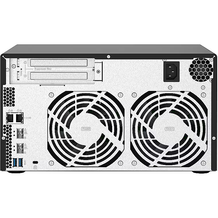 Description - QNAP TS-832PX-4G The quad-core 1.7GHz TS-832PX features eight 3.5-inch SATA 6GB/s drive bays, providing huge storage potential for a wide range of applications and everyday usage. With two 10GbE SFP+ and two 2.5GbE LAN ports, the TS-832PX supports next-generation networks for empowering bandwidth-demanding applications and providing smoother file access and sharing. Various PCIe cards are also supported, including QM2 cards that provide M.2 SATA/NVMe SSD caching and Qtier auto-tiering storage to boost NAS performance. 1 Two 10GbE SFP+ and two 2.5GbE RJ45 network ports empower bandwidth-demanding tasks and accelerate file sharing. 2 PCIe expansion allows for installing a QM2 card to add M.2 SSDs for caching, a 10/5GbE network card, or a wireless network expansion card. 3 Snapshots record your system status, allowing you to protect files and data from accidental deletion and malware attacks. 4 Cloud storage gateways realize hybrid cloud applications by working with the cache space reserved on NAS to ensure low-latency data access to the cloud. 5 Qtier auto-tiering technology and SSD caching enable constant storage optimization. 6 Increase the storage capacity of the TS-832PX with QNAP TR RAID expansion enclosures or TL JBOD.