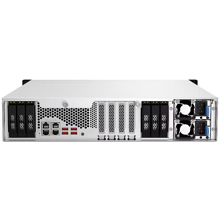 Description - TS-h1887XU-RP High-capacity 10GbE-ready hybrid storage with PCIe Gen 4 expandability, QuTS hero and QTS support. The high-capacity TS-h1887XU-RP is powered by the next generation Intel Xeon E-2300 processor, supports up to 128GB of DDR4 ECC memory and features a hybrid memory architecture mass HDD/SSD that balances performance and cost for reliable server-grade performance. Powered by the ZFS-based QuTS hero operating system, the TS-h1887XU-RP emphasizes data integrity with data deduplication, near-unlimited snapshots, real-time SnapSync, and QSAL (QNAP SSD Antiwear Leveling) for an ideal storage solution that meets today's business requirements for file servers, virtualization servers, VDI and backup/restore. Hybrid HDD/SSD storage It combines the advantages of a high-capacity hard drive and a high-performance SSD. Supports SSD cache, increasing IOPS performance. 10GbE and 2.5GbE connectivity Two 10GBASE-T ports and two 2.5GbE ports speed up virtualization, intensive file access, and backup/restore tasks. PCIe Gen 4 slots By installing 10/25GbE cards, QM2 cards, or Fiber Channel cards, you can increase application performance. Virtualization applications Support for virtualization storage and hosting of virtual machines and containerized applications. One-stop backup center Optimized for business-class backup, including Google Workspace and Microsoft 365 data, and VMware and Hyper-V VMs. Cloud storage gateway Enables hybrid cloud applications, additionally enabling NAS cache reservation for low latency access to cloud data.