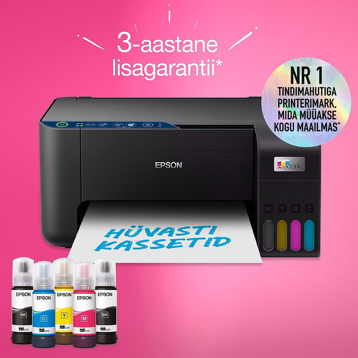 Epson EcoTank L3271 komplektis on kuni 3 aastat tinti, mis võimaldab muretult printida suurel hulgal dokumente ja fotosid, vähendades sagedase tindivahetuse vajadust.