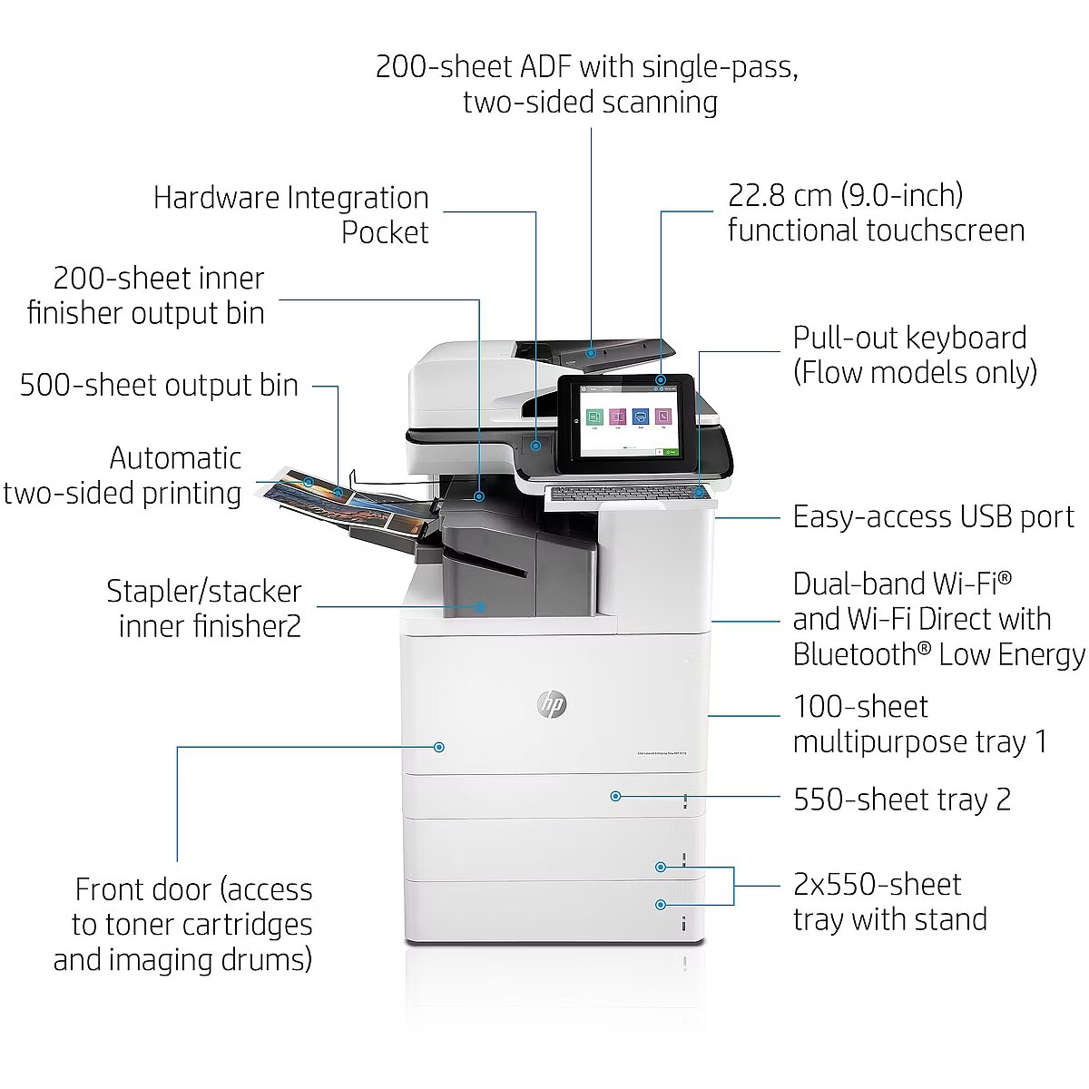 Input & output capacity - Auto document feeder (ADF) input capacity - 200 sheets