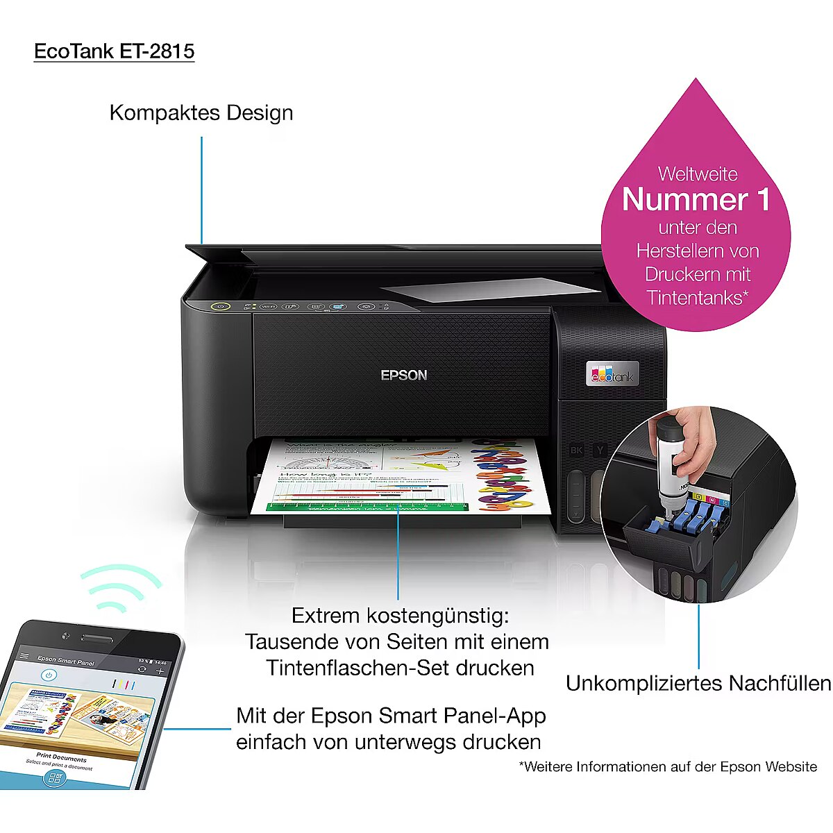 ShortSummaryDescription - Epson EcoTank ET-2815 A4 Multifunction Wi-Fi Ink Tank Printer, Inkjet, Colour printing, 5760 x 1440 DPI, A4, Direct printing, Black